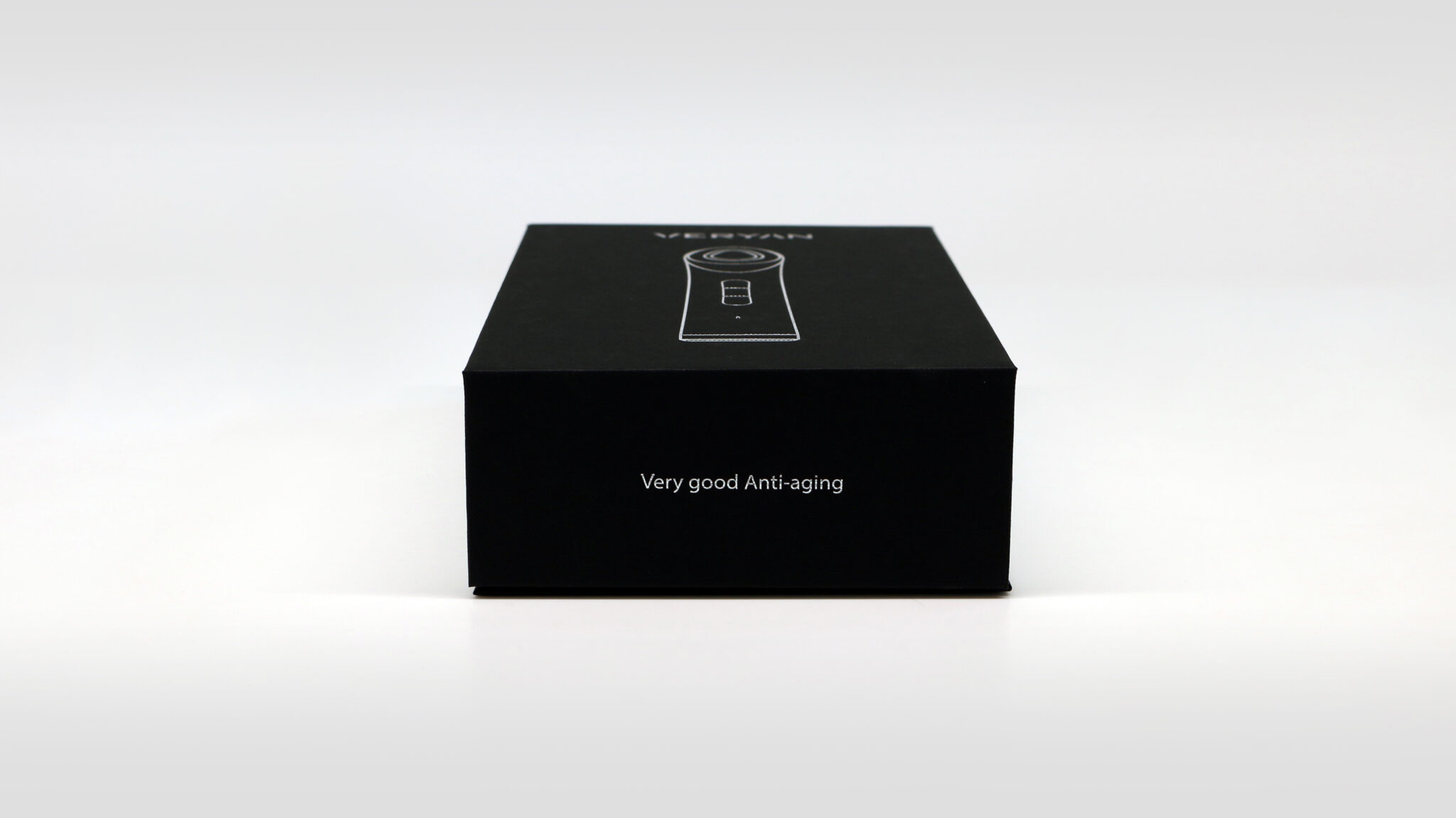 ■ Design Concept – Minimal Luxury 본 이미지는 안티에이징 디바이스(VERYIN)*를 위한 패키지 디자인으로, 제품 자체의 전문성과 신뢰성을 극대화하기 위해 극도로 절제된