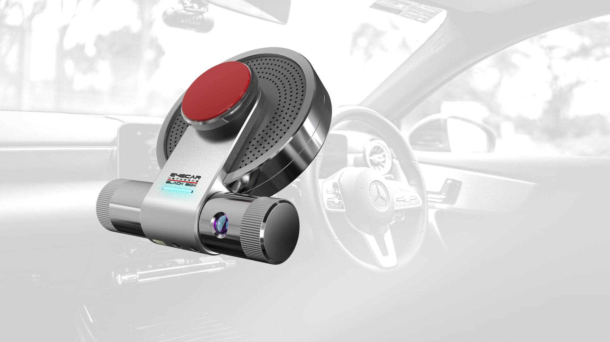 The front’s metal-processed textures, micro-perforation patterns, and high-gloss chrome riffs evoke the interior details of high-end luxury car brands, reinforcing its identity as a Tech Accessory-style Dashcam that complements the interior aesthetics and overall quality of the vehicle.