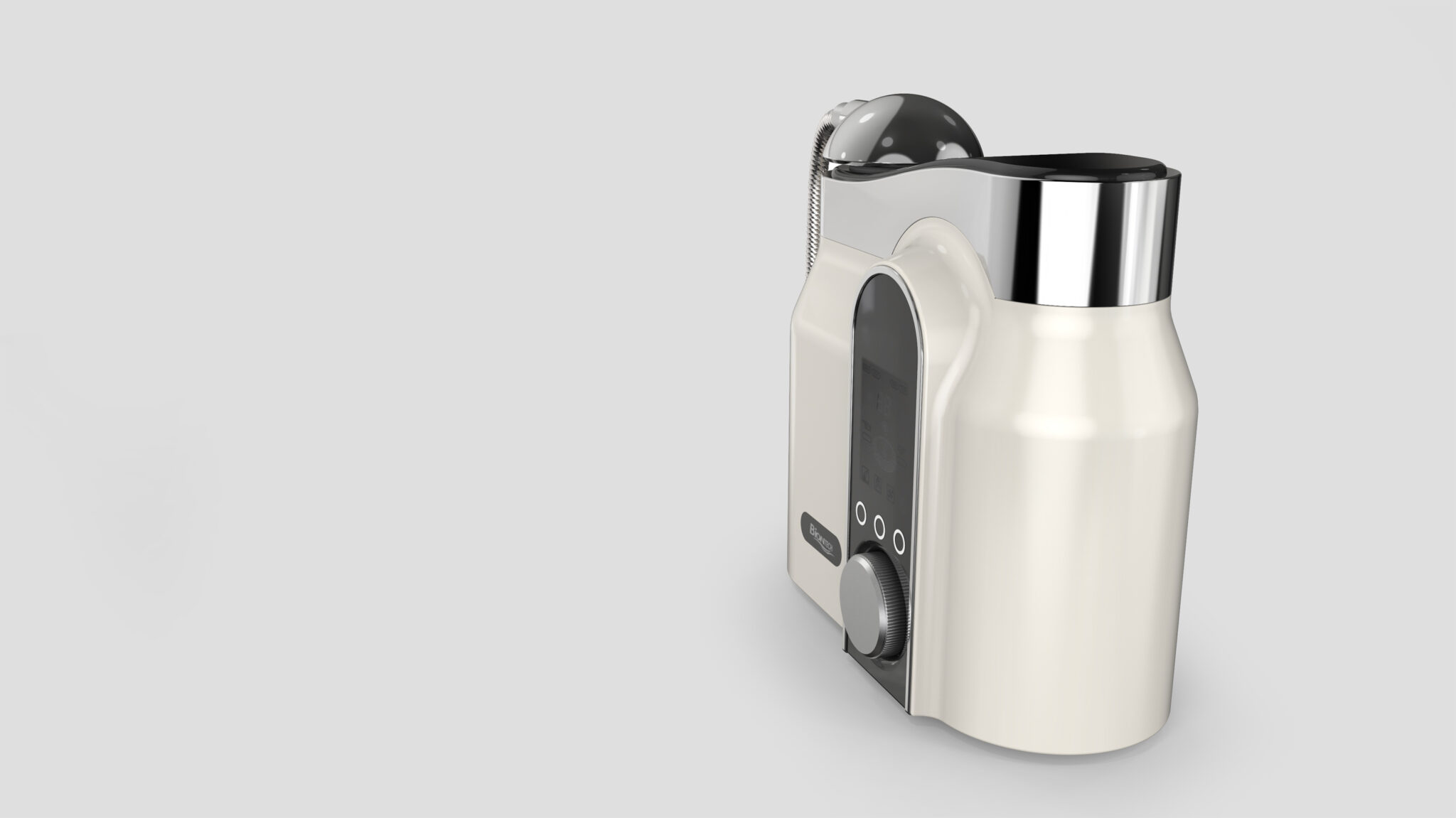 Departing from the rigid industrial aesthetic typical of functional devices, this form pursues Soft Precision by harmonizing fluid curves with refined metallic details.
