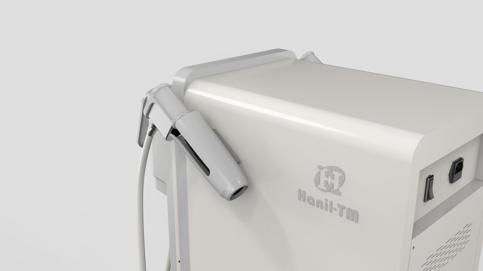 The soft curves on the front provide a UX-Based Sculptural Flow that naturally connects the functional sequences, including handpiece docking, operation, and cable management. The tilt function of the upper monitor is designed for medical professionals to use intuitively from various directions.