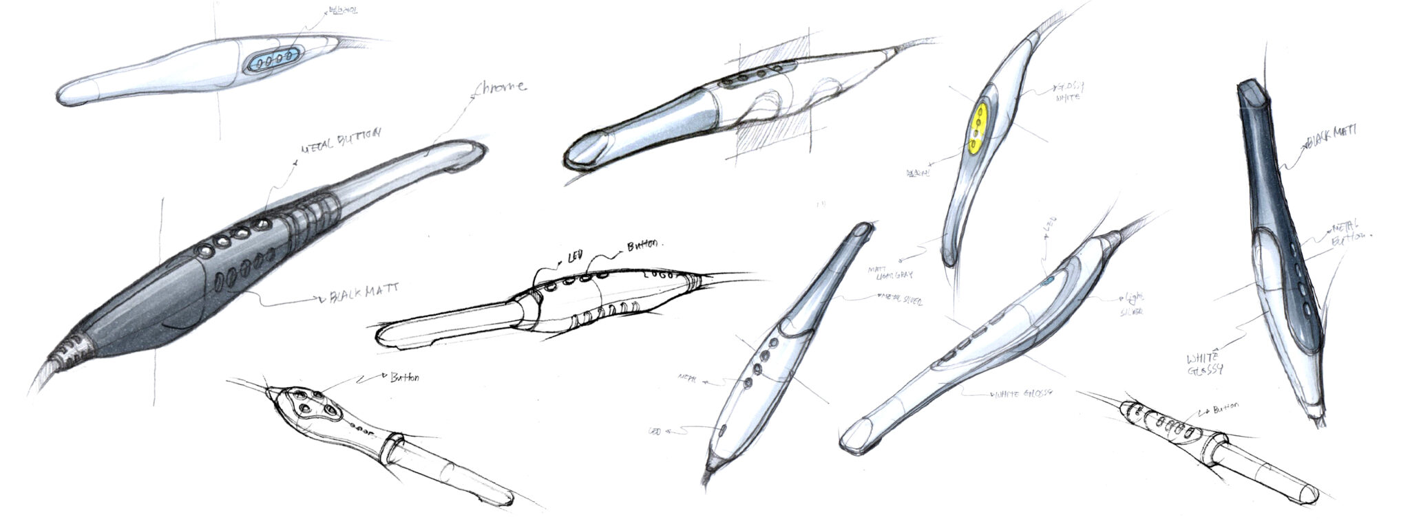 The body silhouette, harmonizing curves and straight lines, follows the natural ergonomic flow of the fingers to provide a stable grip and minimize fatigue during prolonged use. The upper button arrangement is based on a Tactile Feedback-Centered Control Logic, configured so that medical staff can perform immediate mode operations without shifting their gaze.