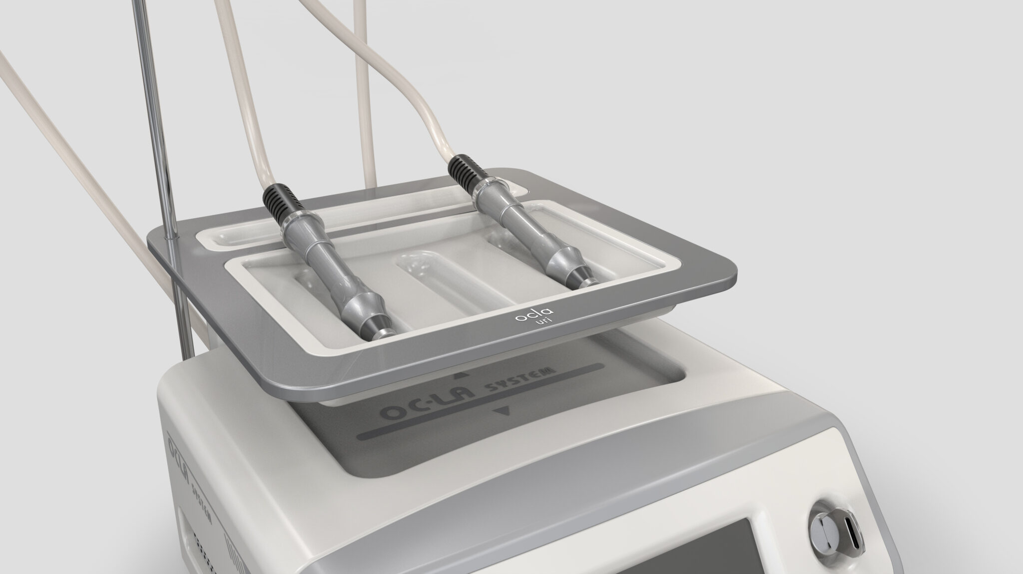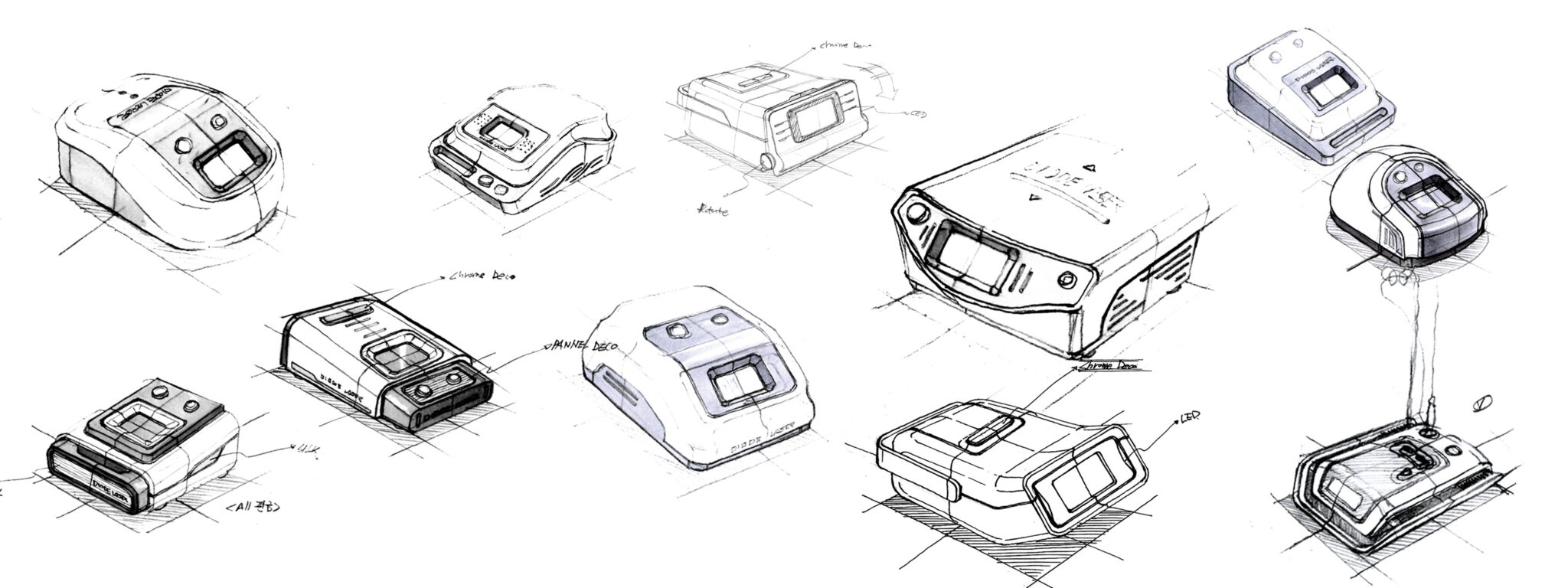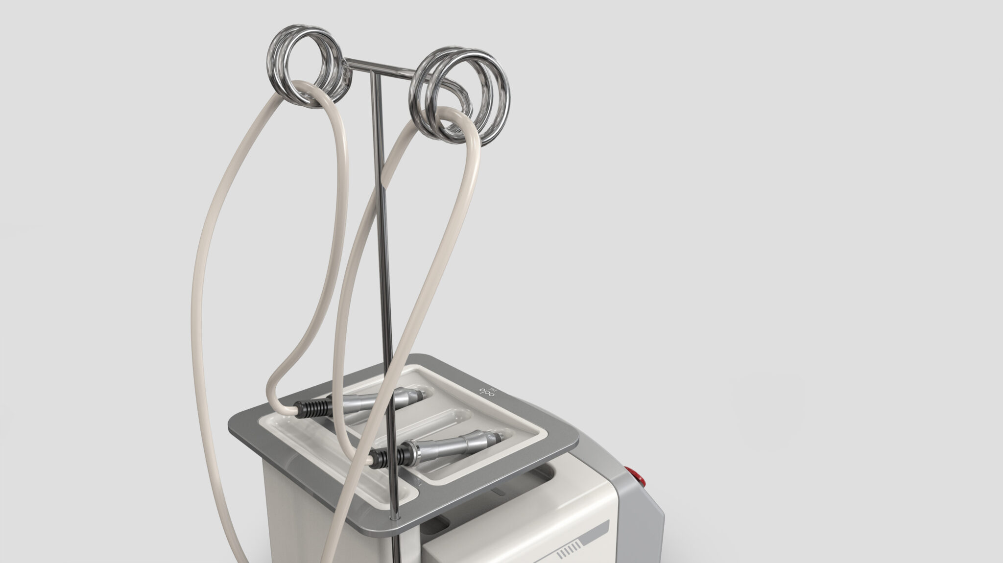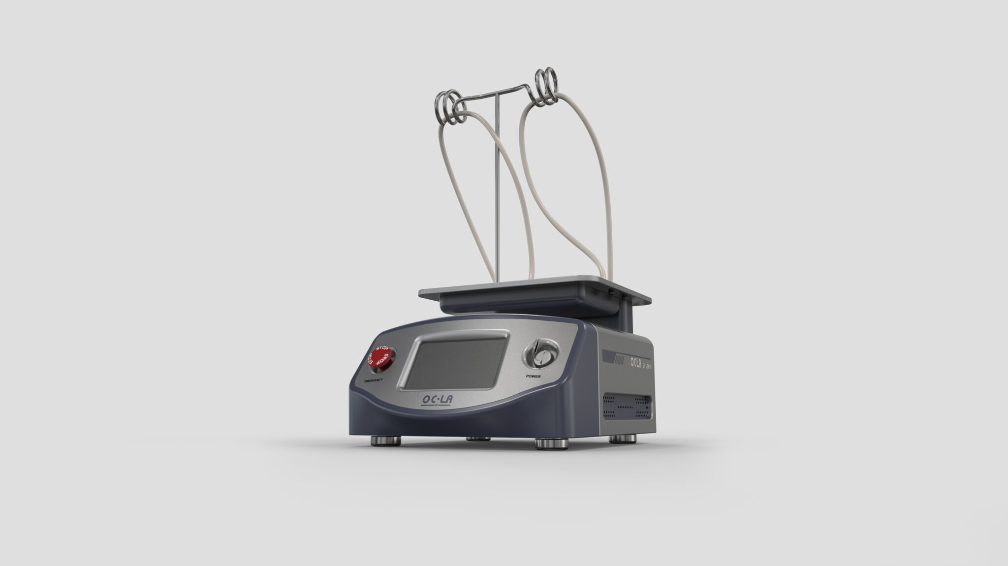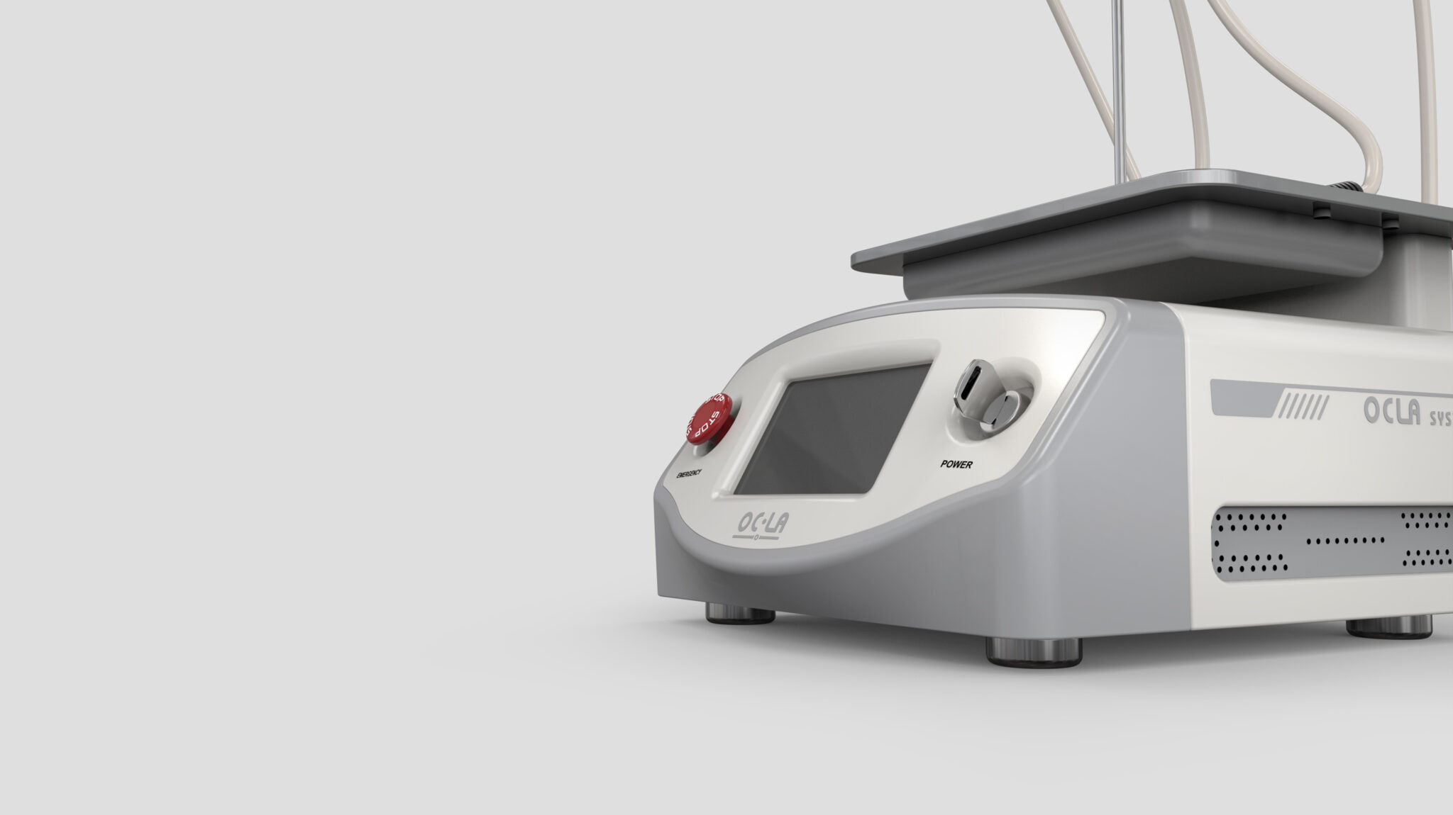 This equipment is designed under the concept of Compact Precision, combining the precision of small laser devices with the practicality of portable workstations. The front volume is composed of low and wide proportions to convey the reliability, stability, and precise operability essential for medical devices. By applying rounded edges, it reduces the intimidating presence in a hospital environment and provides a soft approach for both users and patients.
