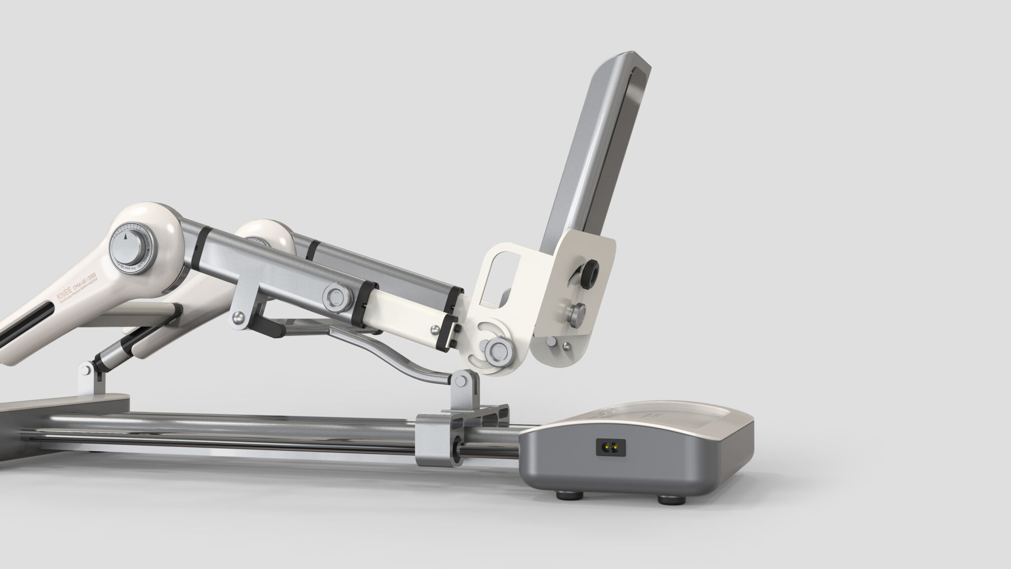 The twin link arm structure implements a Precision Motion Mechanism for accurate angle adjustments, with joints and rails engineered for high rigidity and low friction. Considering Safety Support Geometry, all contact points and adjustment units feature rounded corners and smooth surface divisions to minimize patient anxiety during physical contact.