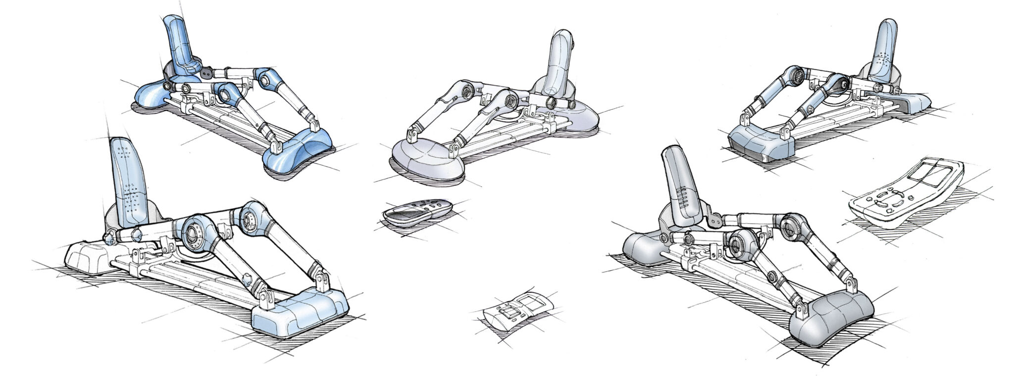 The seating and footplates are designed using a Human-Centric Rehabilitation approach, ensuring patients of various body types can exercise in a stable posture. Furthermore, the Soft Medical Tone of the color palette reduces visual burden and provides psychological comfort suitable for rehabilitation environments. The base features a Stable Base Architecture to minimize vibrations during operation, while the remote-style interface applies Intuitive Adjustment principles for a simplified UI accessible to both patients and staff.