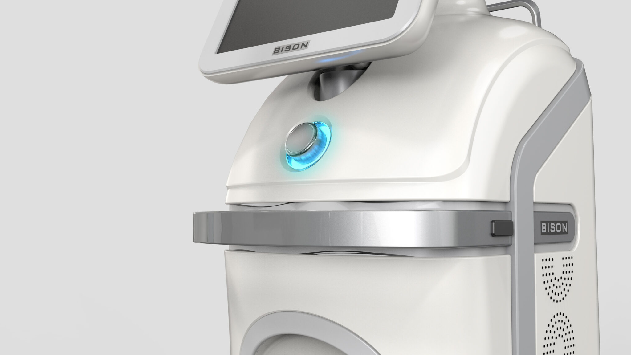 The front UI panel features an Ergonomic Tilting Interface tailored to the user’s line of sight and wrist angle, enabling fast and accurate operation in clinical settings. The base incorporates a stable caster structure for both mobility and firm positioning, while the clean surface configuration ensures easy maintenance in hygienic environments. Every design element prioritizes Credibility, completing a Premium Medical RF Laser System Brand Identity that provides an intuitive user experience and psychological comfort to patients.