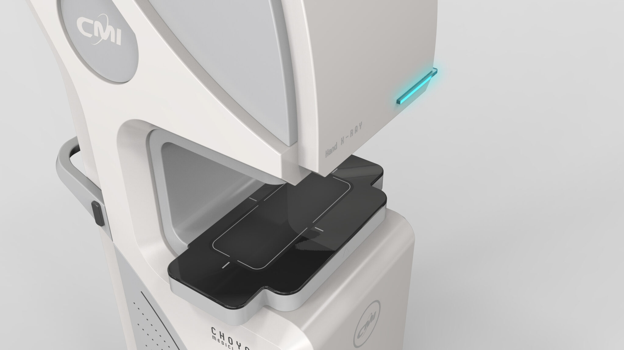 This design is based on a Compact Premium Medical concept that balances diagnostic expertise with a comfortable user experience. The upper head features an intuitive vertical structure and stable volume to clearly define the imaging position, while the light points act as a UX-Based Visual Guide Element to help users easily identify the correct positioning.
