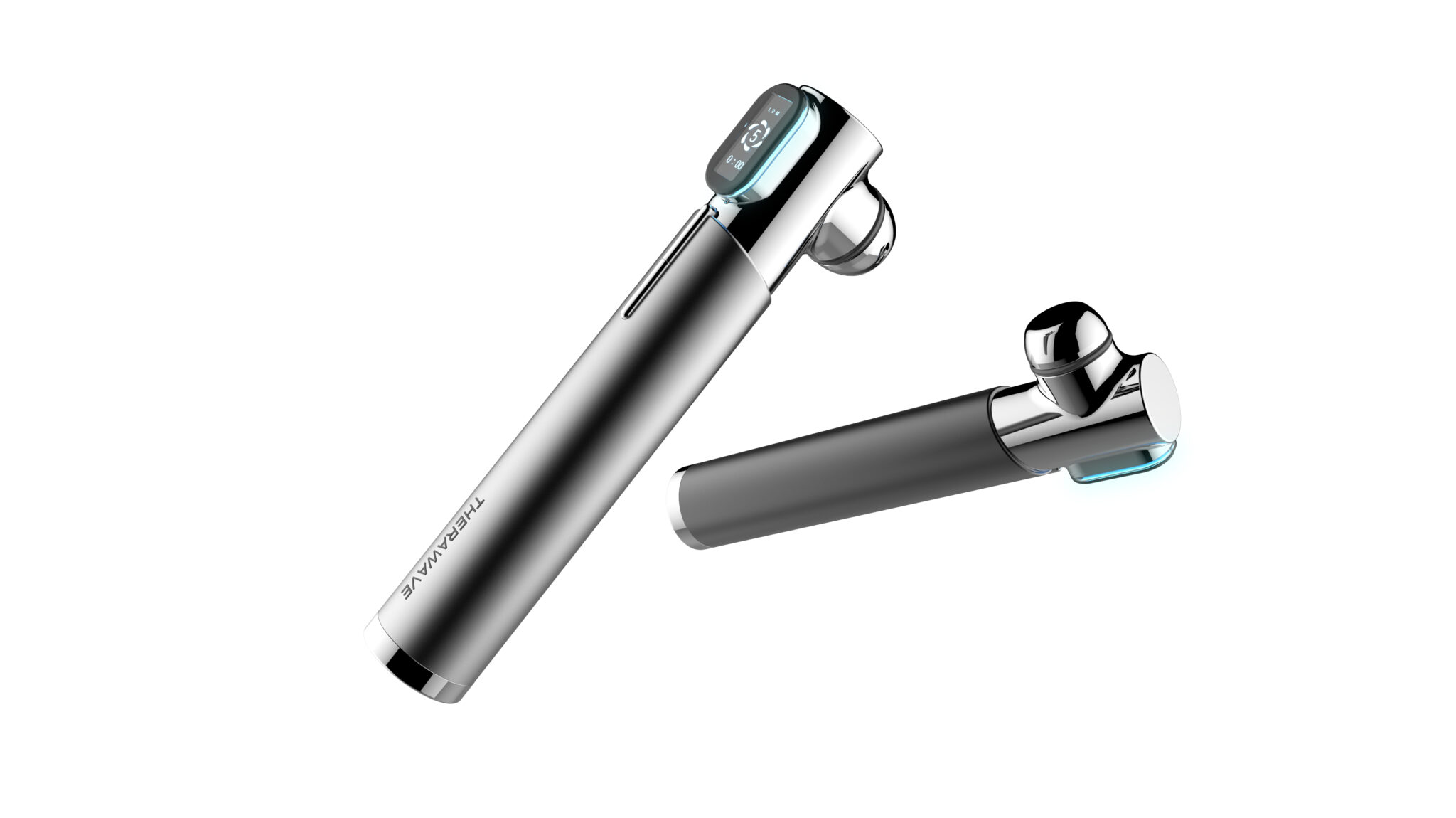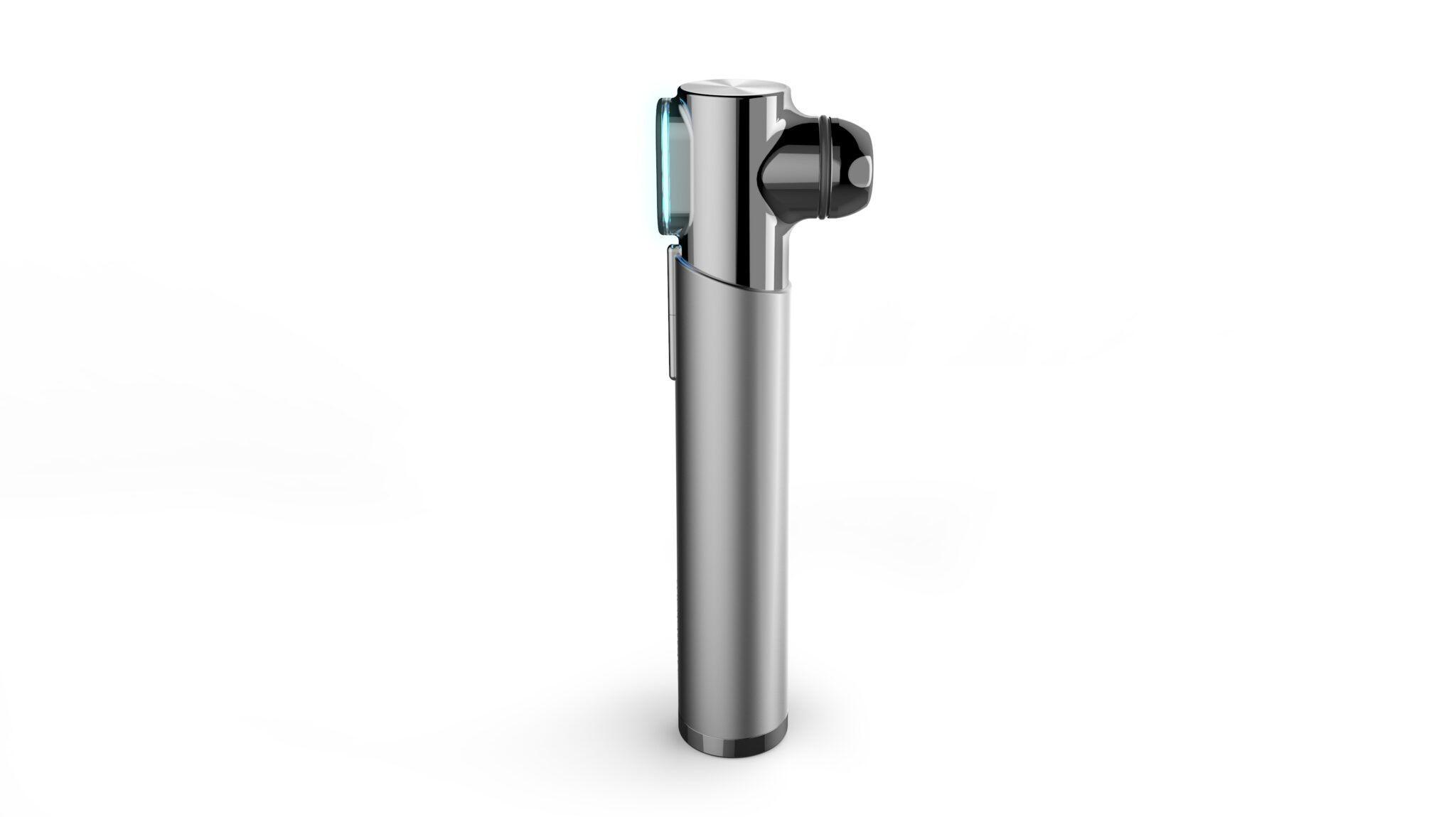 The metallic silver finish provides a calm and refined impression, while the texture that subtly changes with light adds depth as a premium product. The consistent vertical flow allows the device to maintain strong formal integrity even when standing, ensuring it exists as a sophisticated object on a dresser or in a bathroom. By excluding excessive buttons and aggressive colors, it allows the user to experience a refined ritual for the skin rather than the mere operation of a machine. Ultimately, this design translates medical technology into architectural minimalism, communicating trust through form and proportion.