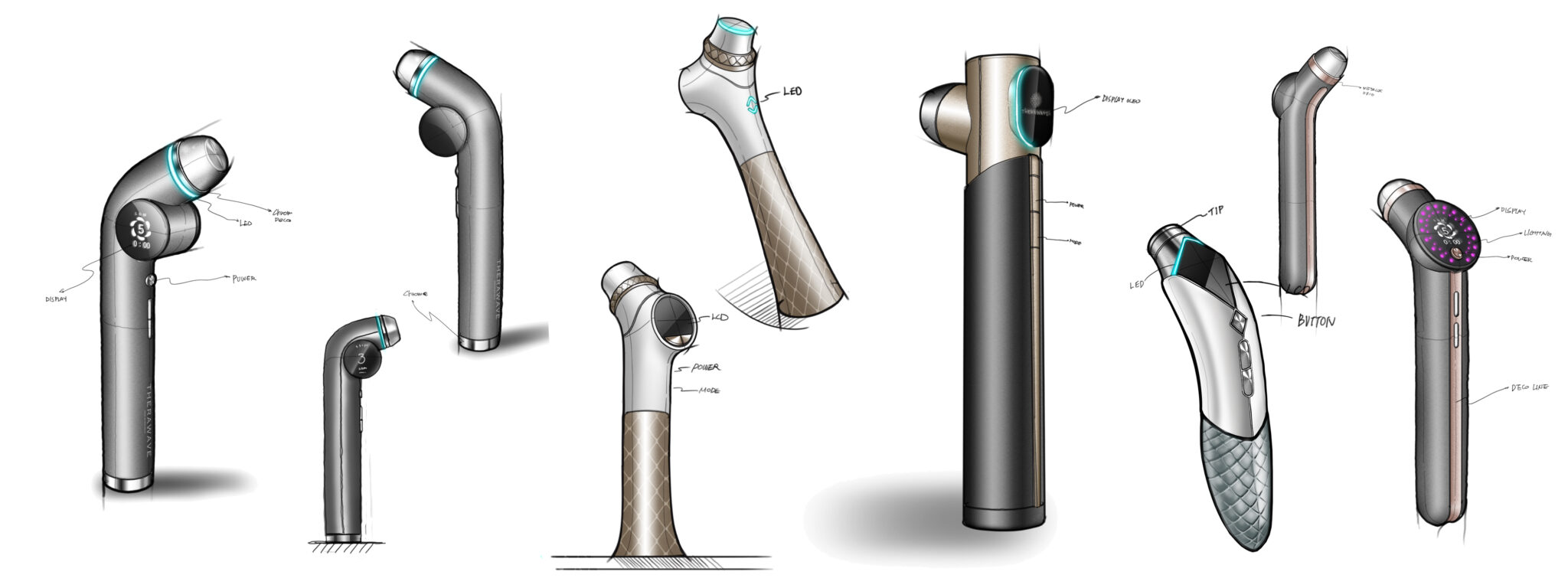 The upper head features a compact structure seamlessly connected to the body, forming an ergonomic tilt that considers wrist angles and facial curves. A micro-UI strategy is applied to the small display to convey only essential information, reducing the operational burden and encouraging focus on the care experience. This satisfies both simplicity and immersion, which are crucial in a home beauty environment.