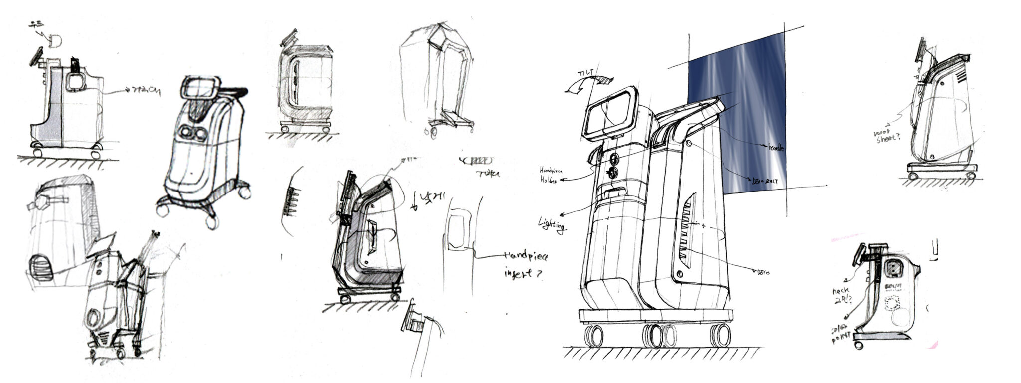 This approach enhances user trust in the equipment while simultaneously elevating the overall interior quality of the clinic. The stable base structure at the bottom and the touch monitor at the top are configured to satisfy both usability and mobility, representing the goal of a high-end medical device where aesthetics and functional requirements are naturally integrated.