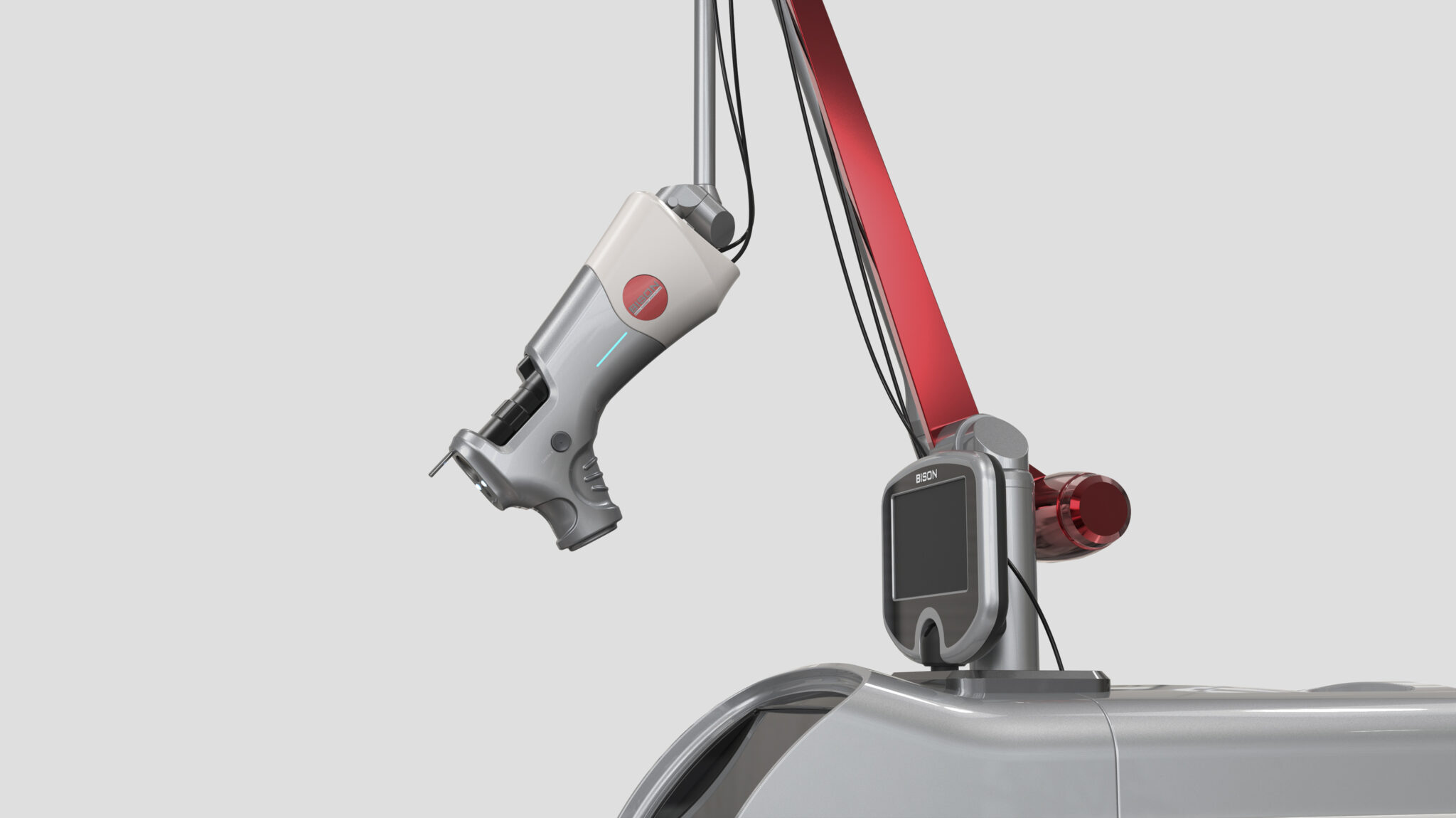 This design visually integrates the Precision of High-End Laser Technology and the Stable Reliability of Medical Devices. Through a Soft-Rigid Fusion Design that combines smooth curves with a linear rigid structure, it expresses powerful laser performance while ensuring accessibility in clinical environments.