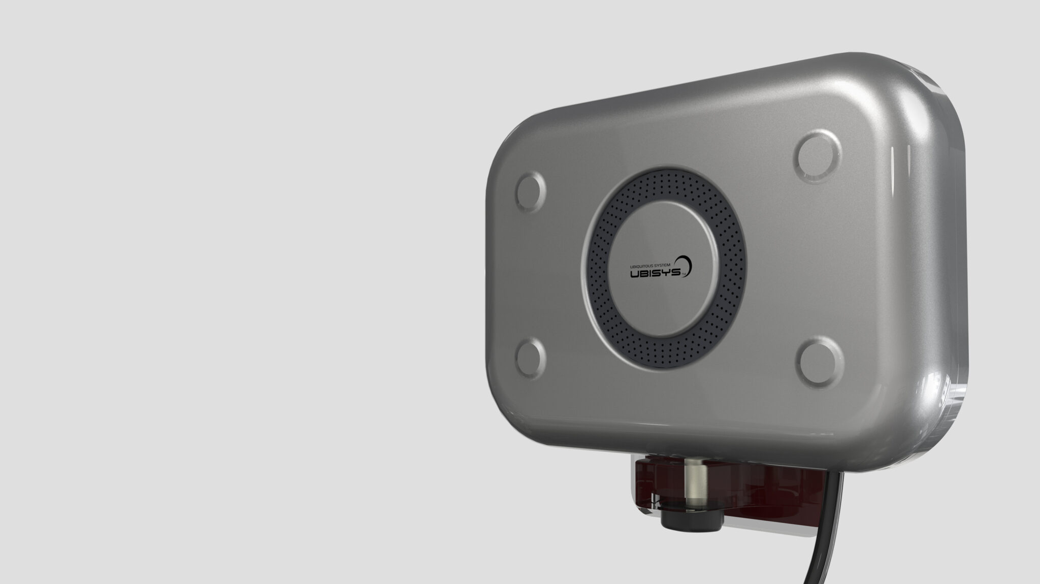 The Concentric Layered Structure applied repeatedly along the perimeter implies the flow, diffusion, and overlap of transmitted signals while naturally highlighting the functional area at the center of the product, the brushed metal panel.
