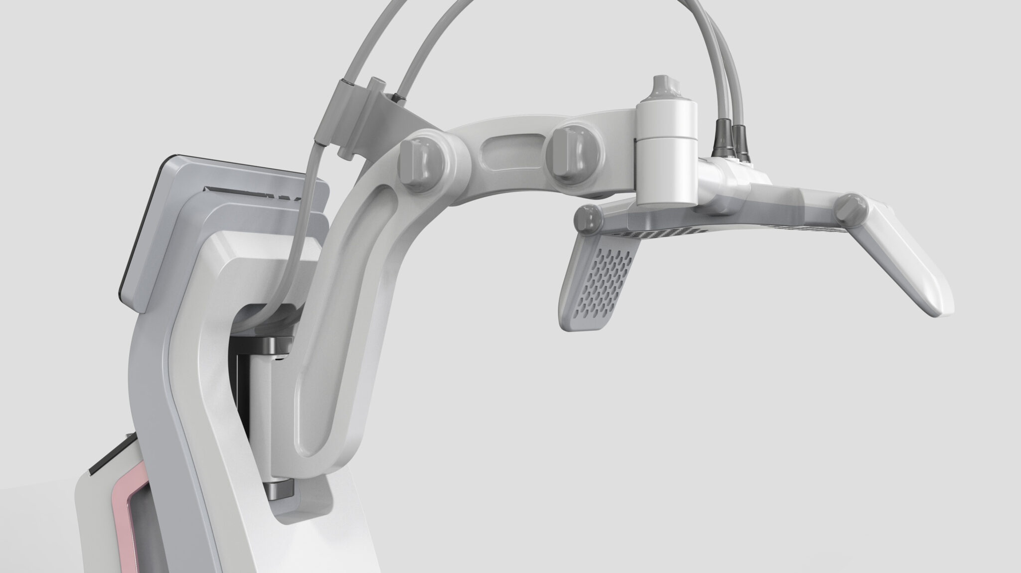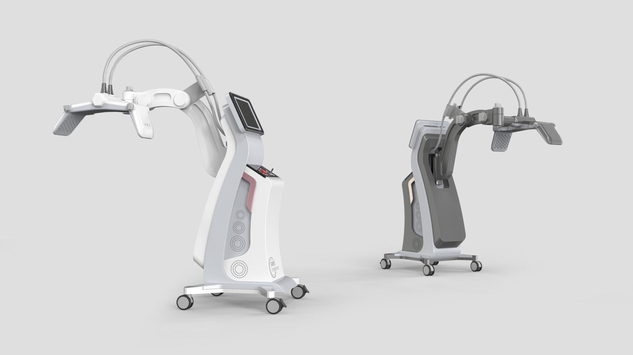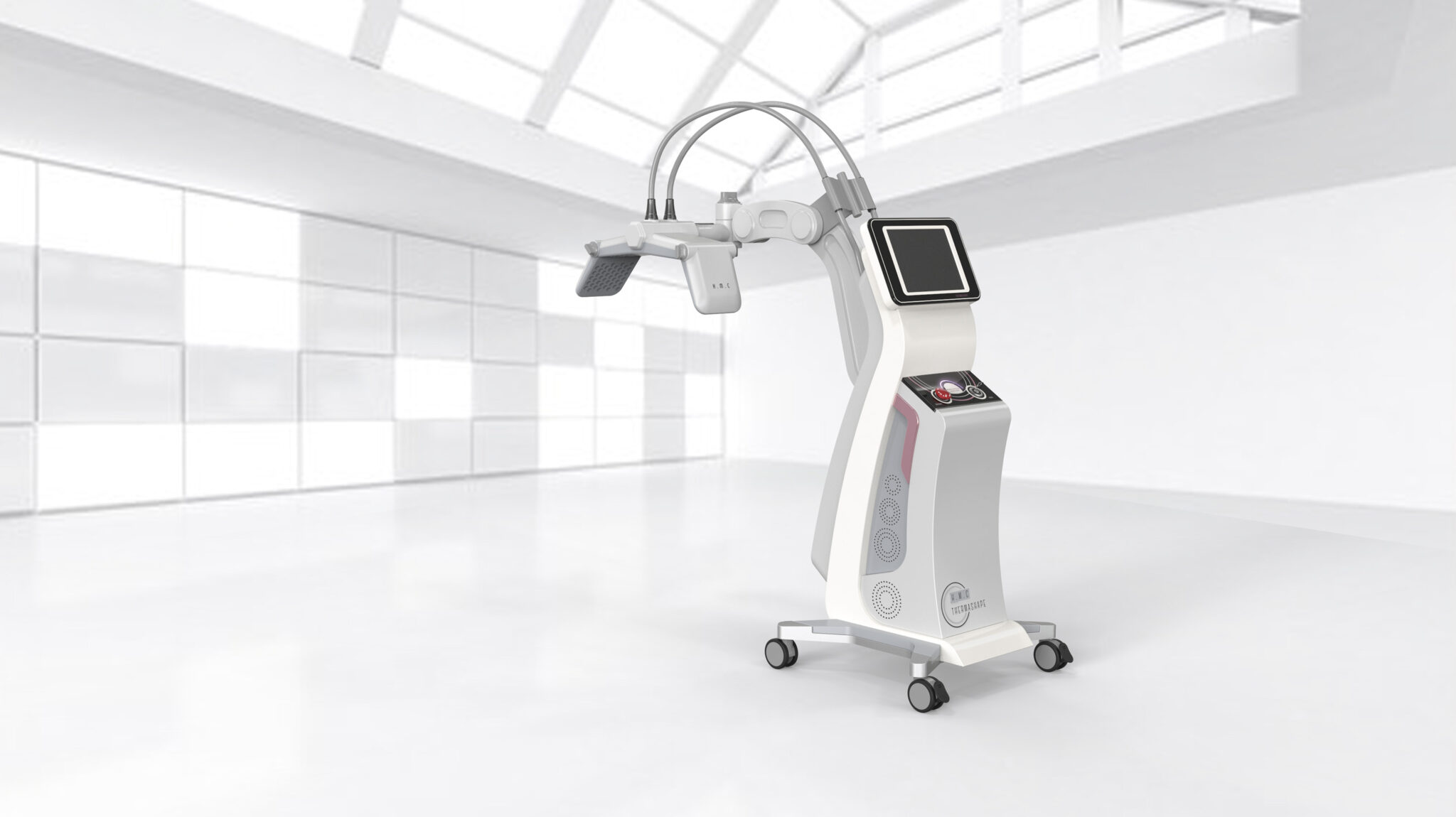 This system is designed by integrating the core values of non-invasive body contouring, Precision Energy Delivery, Body Contour Compatibility, and Stable Experience, into a single formal language. The flowing curvature of the body is inspired by the human silhouette, visually expressing the Soft Non-Invasive Feel of energy-based procedures. The S-line structure, which expands as it rises, naturally guides the movement of the treatment head and the medical staff’s workflow, while the stable base frame and cart structure enhance professional reliability.