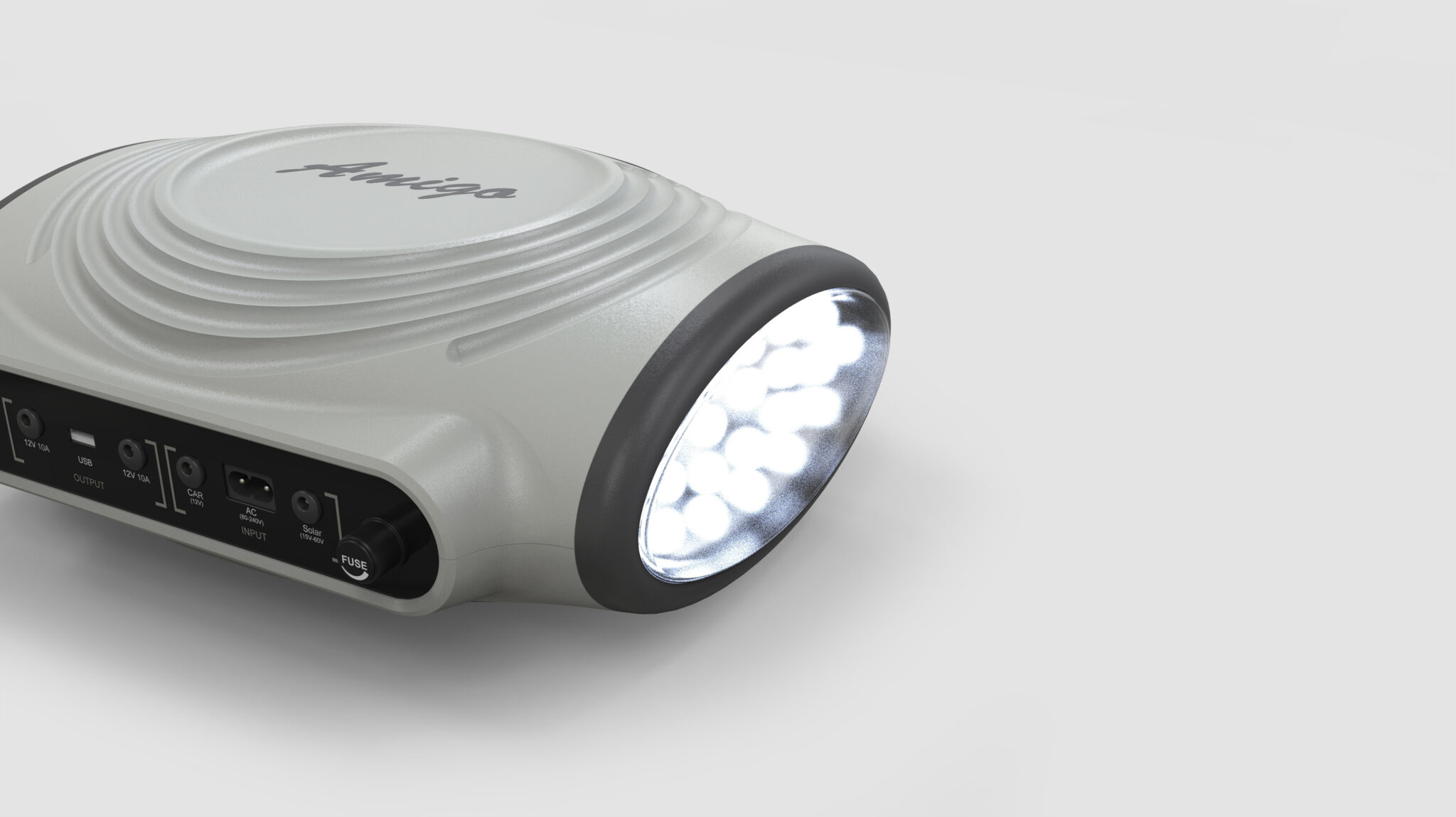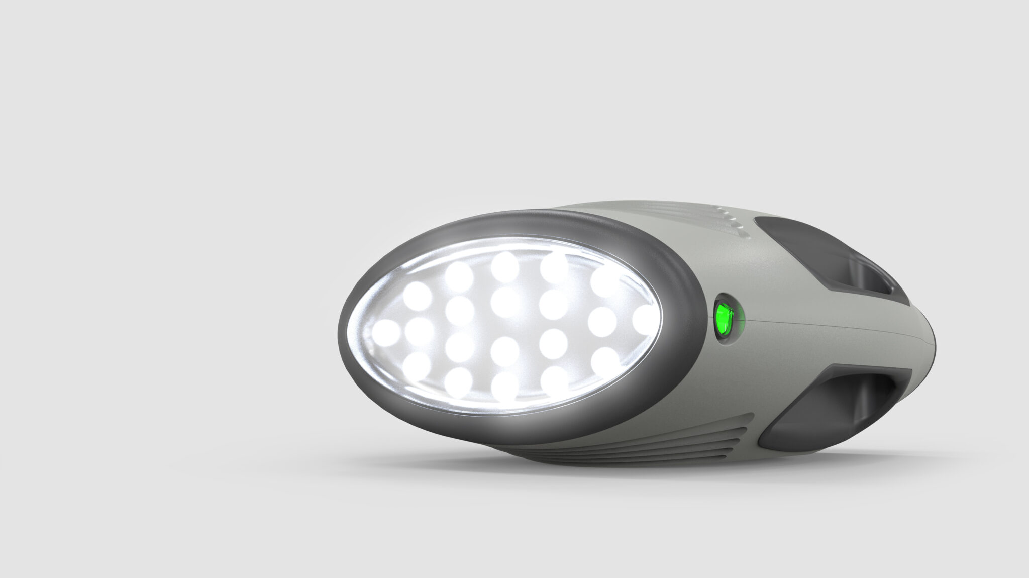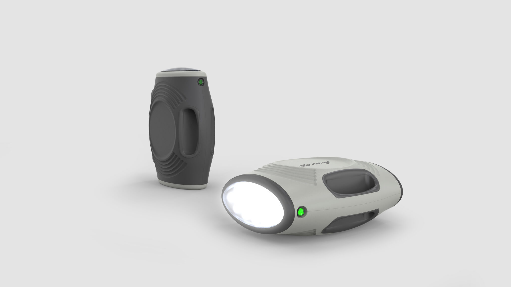 The handheld devices share this design language, maintaining visual and tactile consistency through Oval Grip Structures and radial patterns. The LED lighting is designed as a Seamless Integrated Front Unit for stable light diffusion, while the tactile feedback of the buttons conveys the feel of professional equipment. Overall, this design completes a Soft-Rugged Outdoor Device Identity, integrating form, touch, and usability for reliable performance anywhere.