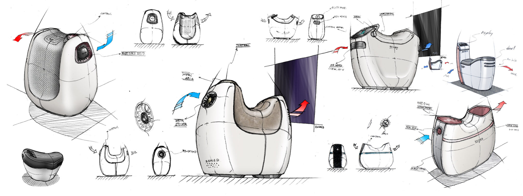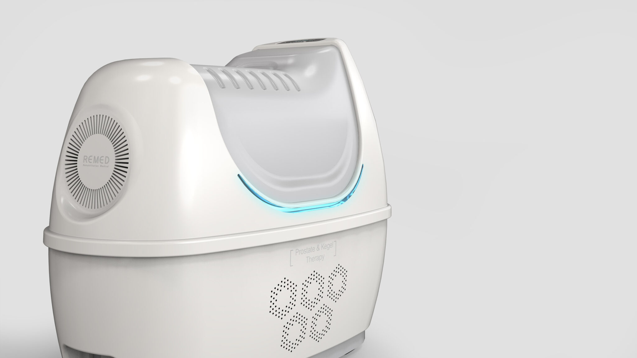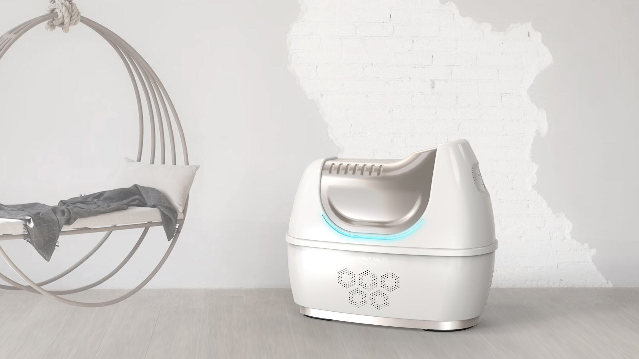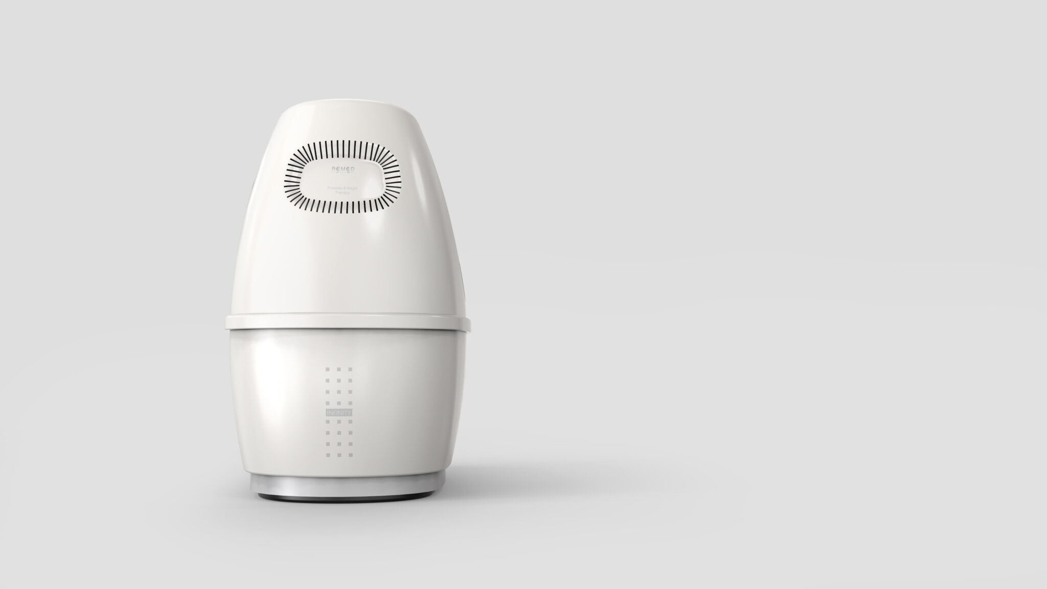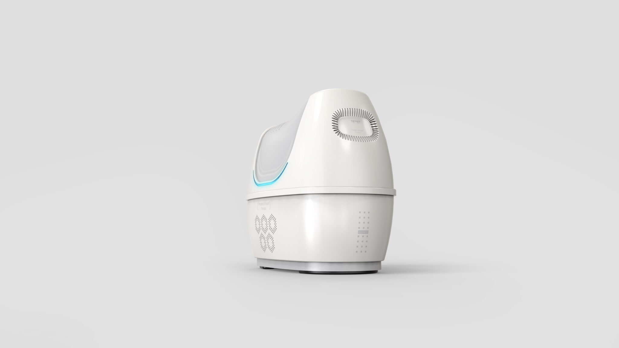 To minimize psychological burden while treating sensitive areas and convey a friendly yet hygienic atmosphere, the design is centered around soft volume and minimal clinical language. The curved, capsule-like form gives users the impression of a comfortable Home-Care Device rather than a piece of medical equipment, while the smooth surface treatment reinforces a soft and sanitary aesthetic.