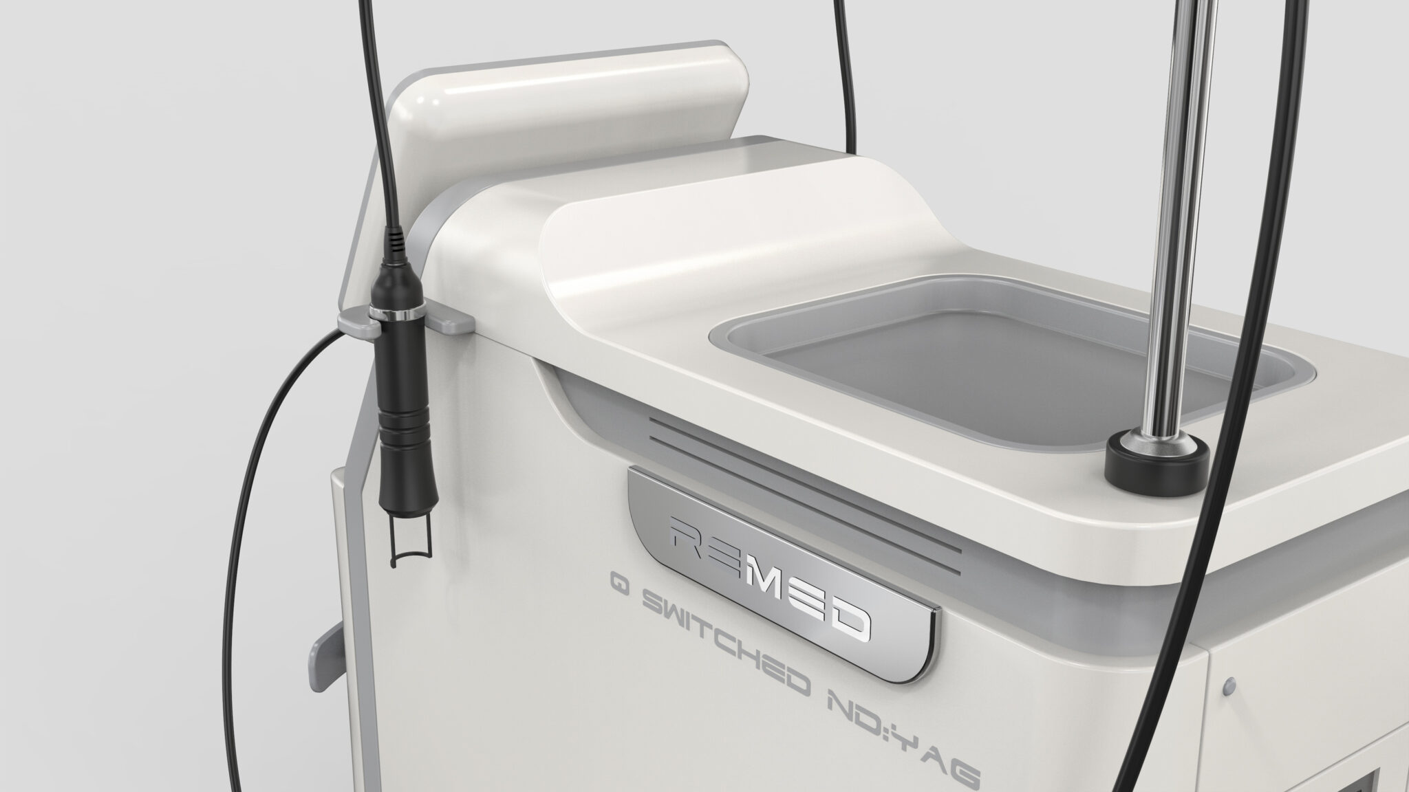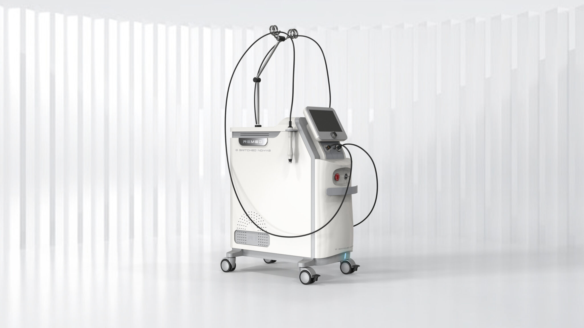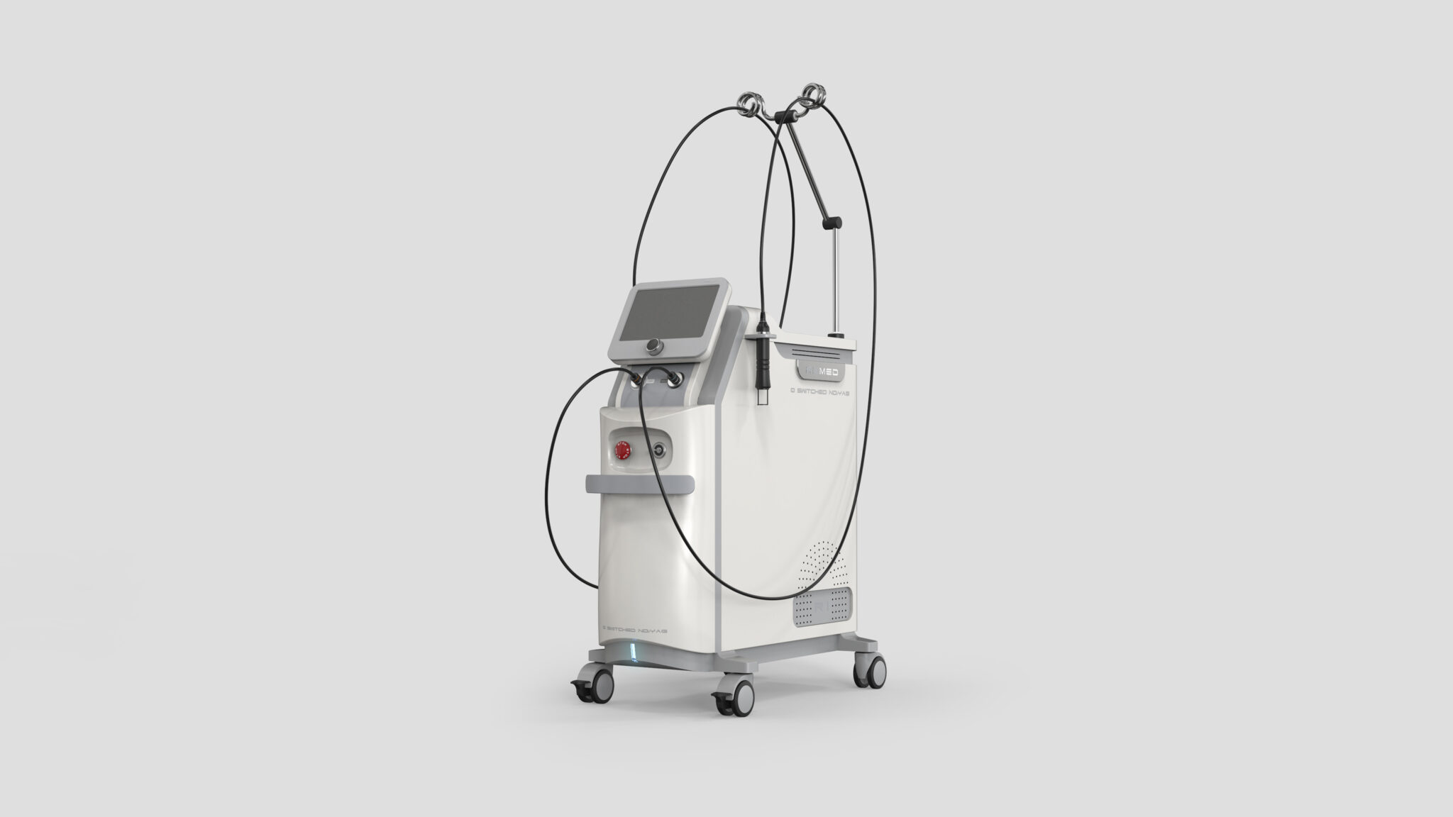 The front touch screen module is tilted for a User-Centered Viewing Angle and Access Path, maximizing visibility and operational convenience during treatment. Reflecting the system’s characteristic of connecting multiple probes, the positioning incorporates Cable Flow Design to ensure natural movement and organized lines.