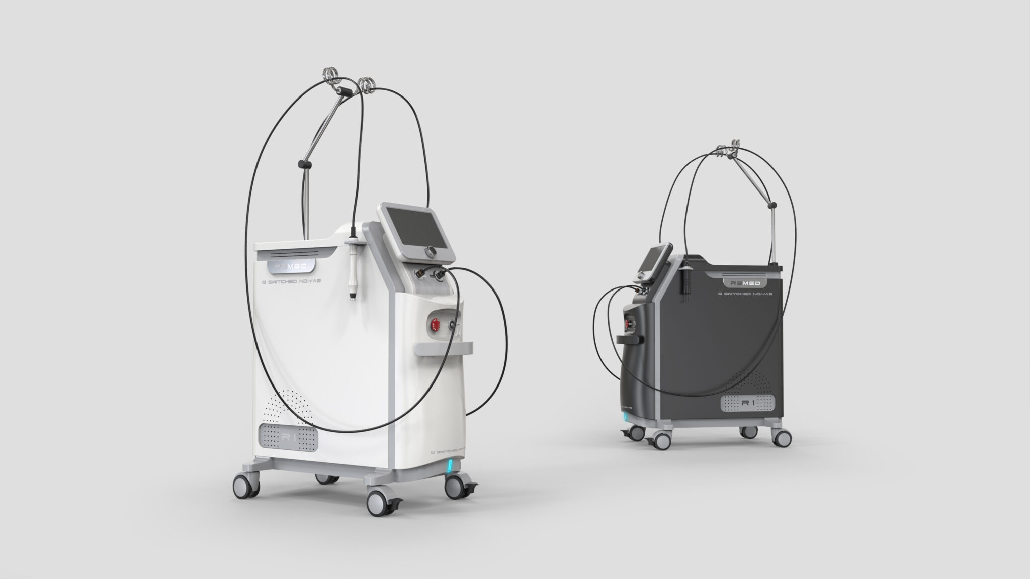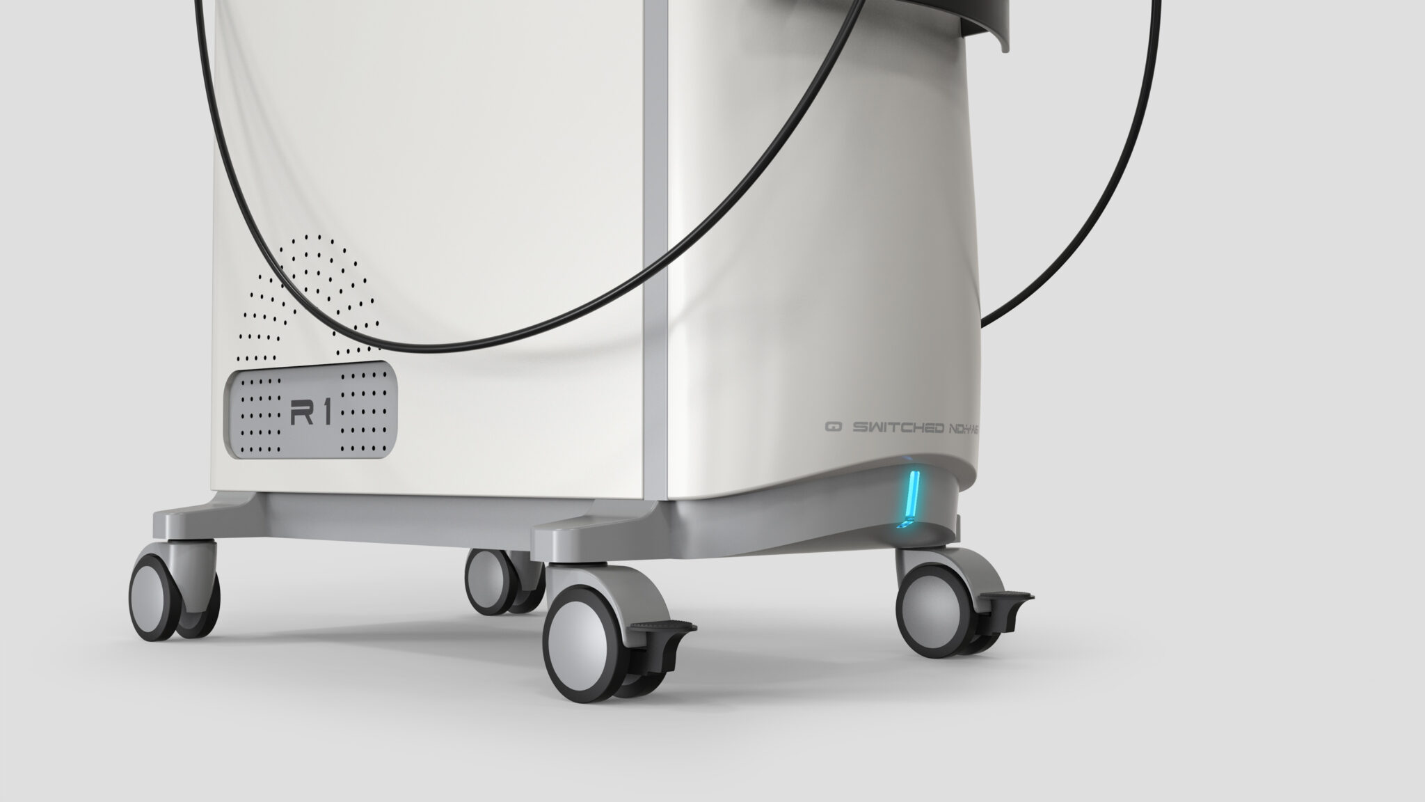 The RSWT high-intensity physical therapy system is designed around Medical Professionalism, Treatment Reliability, and Ease of Use, establishing a Clean, Modern, and Function-Oriented Design Language. The body is finished in a Medical White Base to highlight clinical hygiene, while Soft Contour Geometry balances curves and straight lines to deliver both sturdiness and a friendly, stable form.