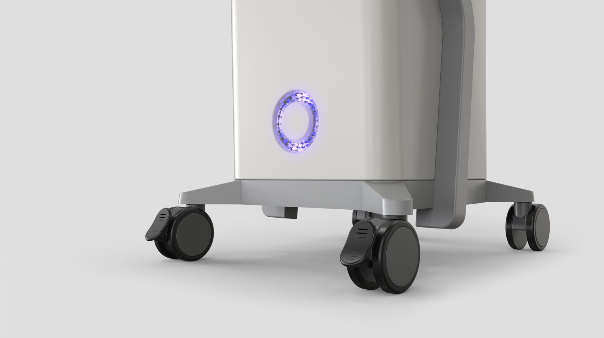 The Ergonomic Front-Interface maximizes visibility and control for standing operators, while the round base and LED lighting complete a Clean-Modernism suitable for medical interiors.