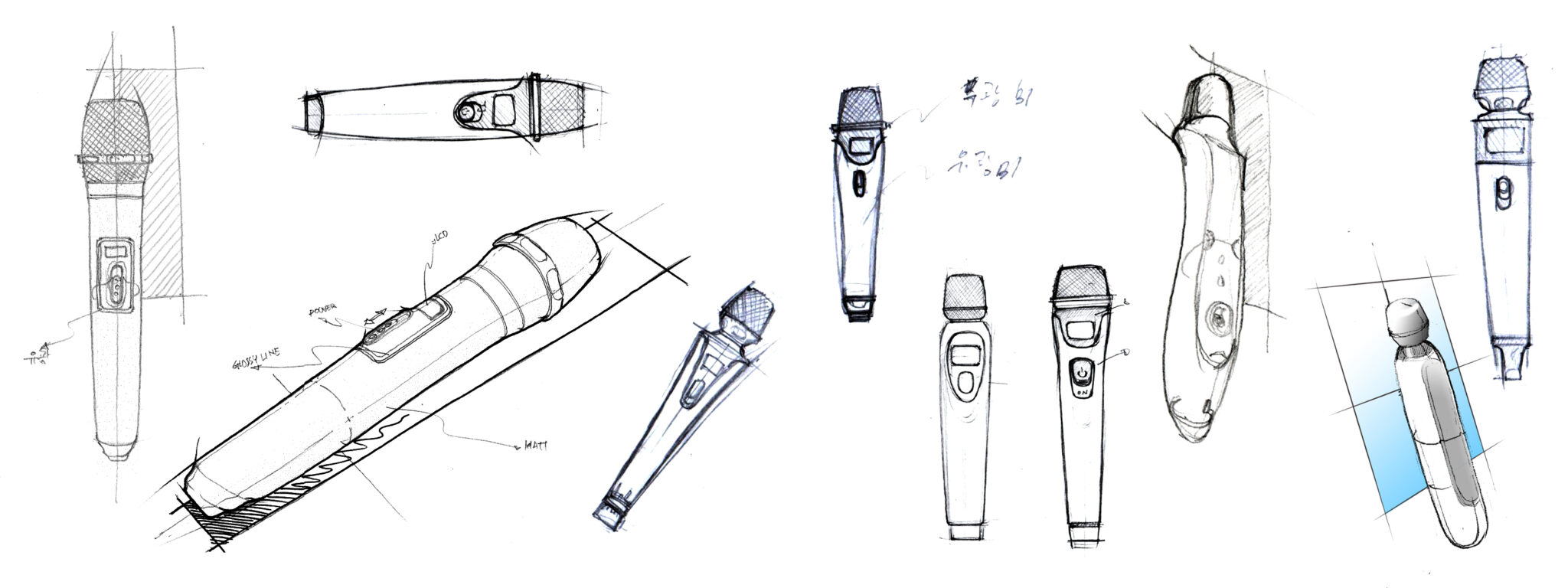 The microphone body harmoniously balances straight lines and curves to provide an Ergonomic Grip that Stays Stable the Moment it is Held, and the buttons and display are aligned in a minimal, clutter-free form to strengthen Immediate Operational Intuitiveness. The monotone palette of gray, black, and white grants a Clean yet Professional Premium Sensibility depending on the usage space, be it home, studio, or leisure.