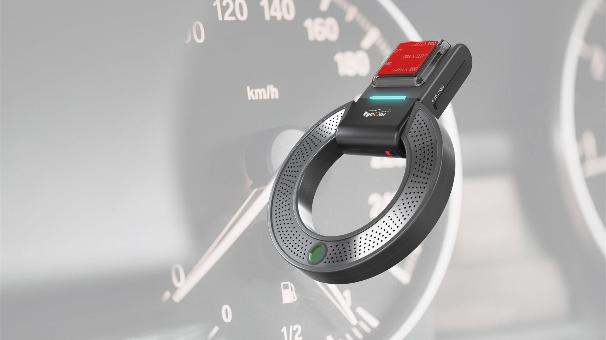 기존 블랙박스의 단선적 형태에서 벗어나, 원형 구조를 중심으로 기능·기술·조작성을 하나의 링 형태로 통합한 인터페이스 디자인이다.