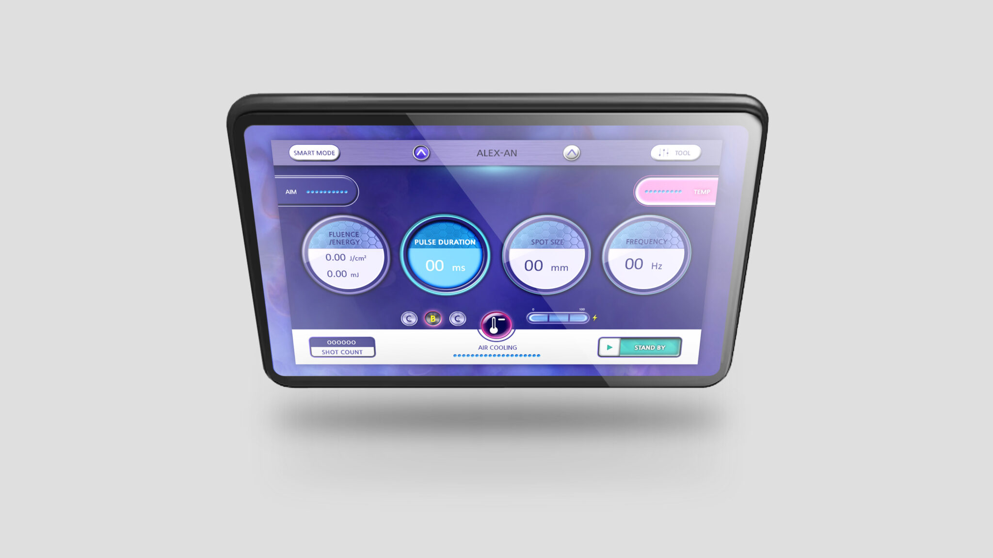 이 인터페이스는 고출력 레이저 장비에 요구되는 정밀한 제어, 명확한 정보 전달, 프리미엄 의료 경험을 중심 가치로 삼아 설계되었다.