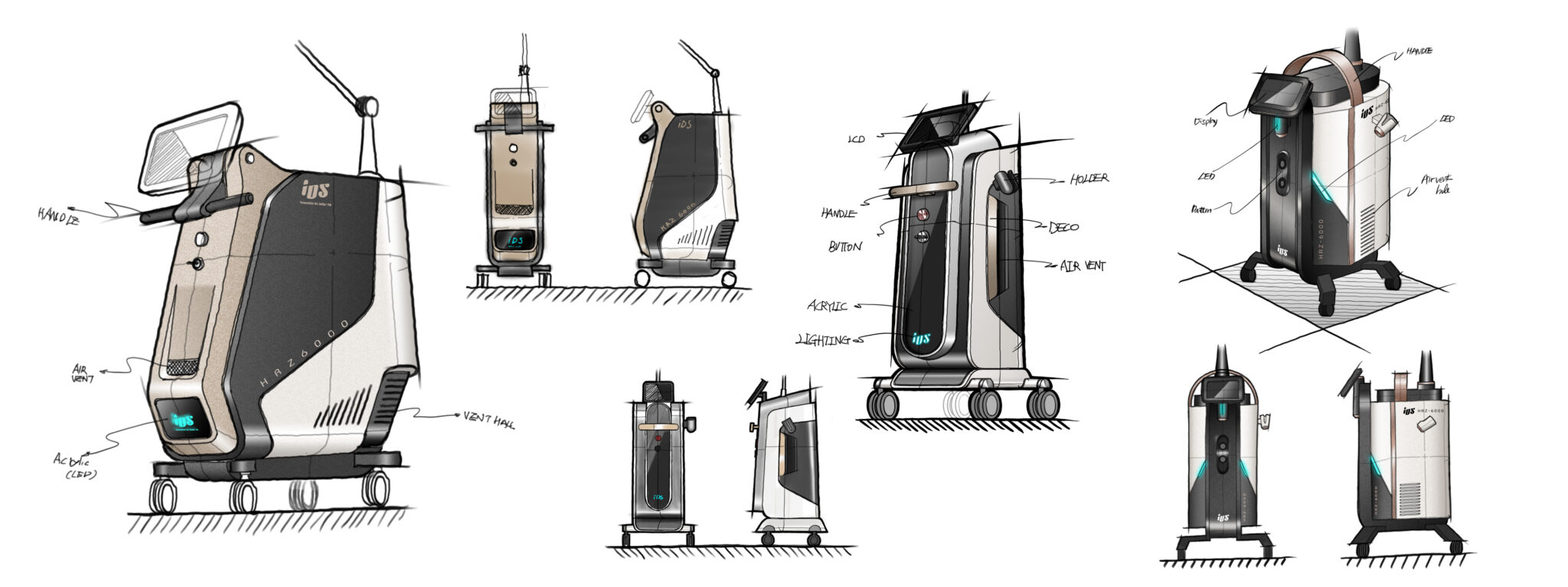 종합적으로 이 디자인은 “과시하지 않지만 신뢰를 주는 의료기기”, “에스테틱 공간에 자연스럽게 녹아드는 프로페셔널 테크놀로지”라는 컨셉을 기반으로, 메디컬과 뷰티의 경계에서 브랜드의 기술력과 품격을 동시에 표현하는 방향성을 갖는다.
