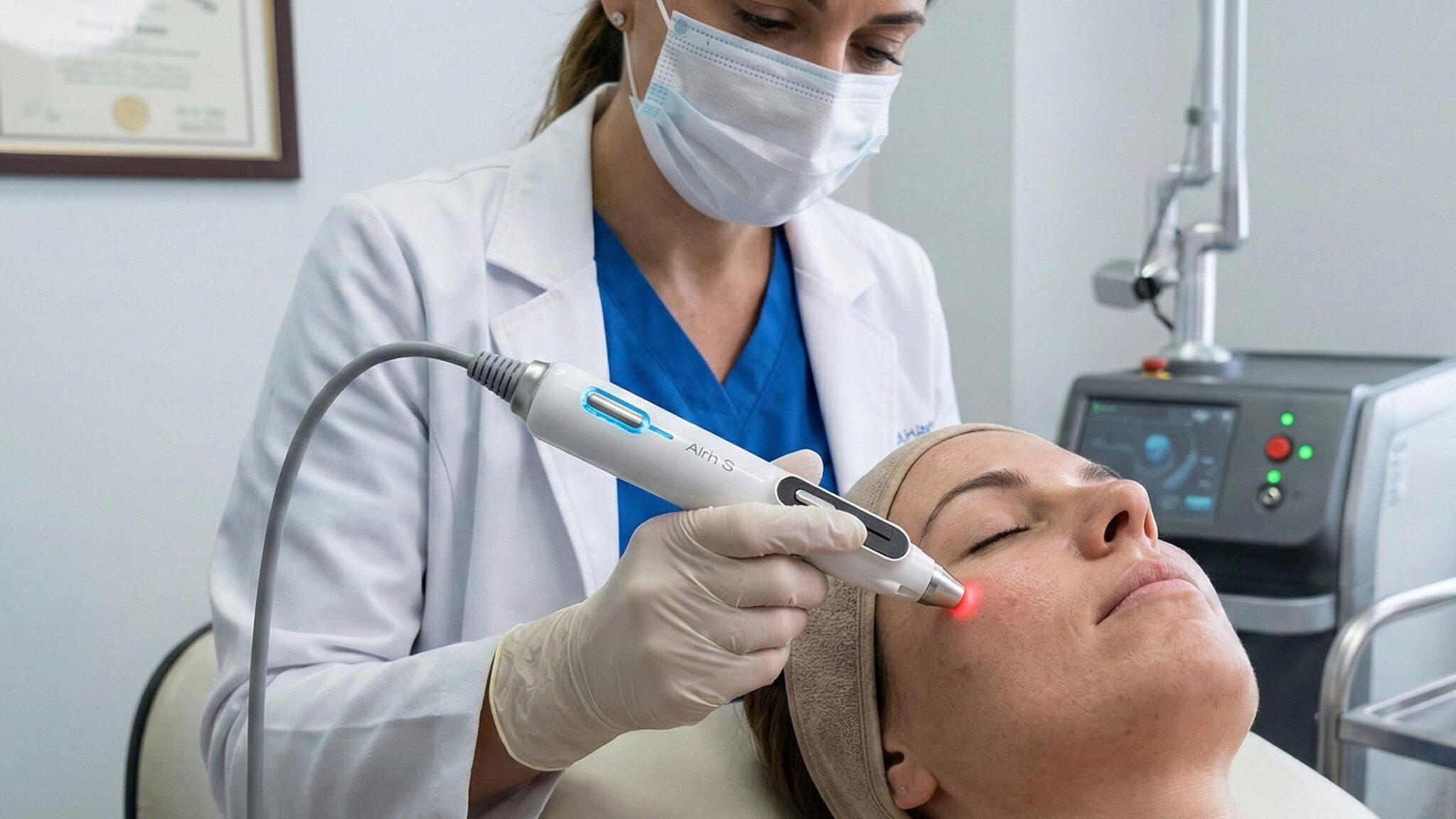 컬러와 소재 표현은 화이트 또는 다크 톤의 무광 마감에 메탈릭 포인트를 더해 신뢰성, 정밀성, 프로페셔널 이미지를 강조하며, 과도한 하이테크 표현 대신 차분한 의료 환경에 자연스럽게 융화되는 방향을 지향한다. 이는 장비 자체가 주목받기보다 시술 행위의 정확성과 안전성을 돋보이게 하는 ‘도구 중심 디자인’의 성격을 갖는다.