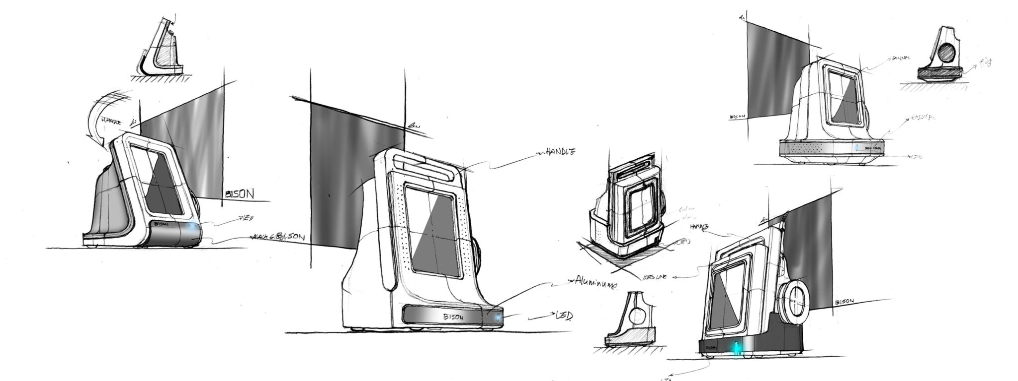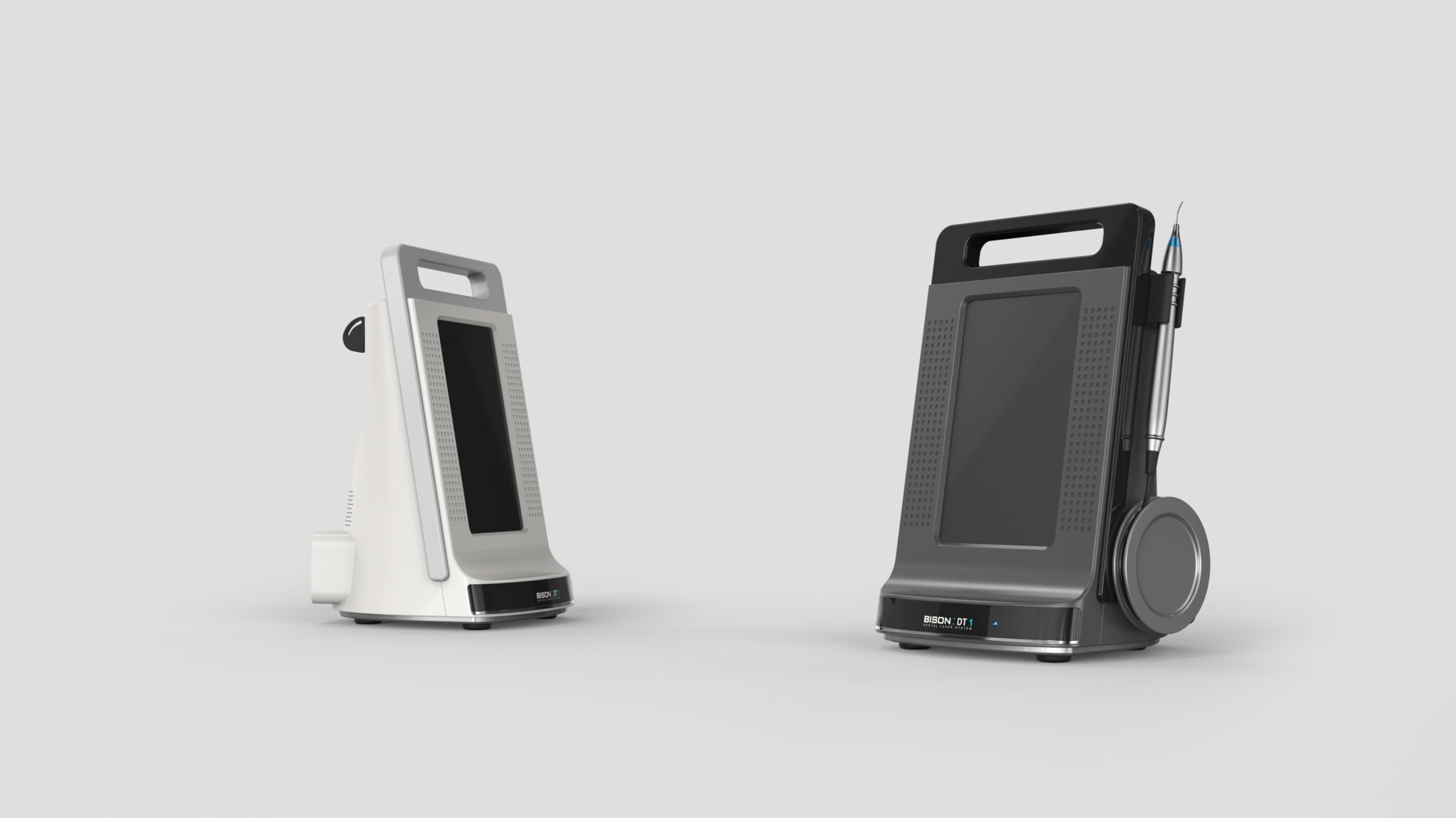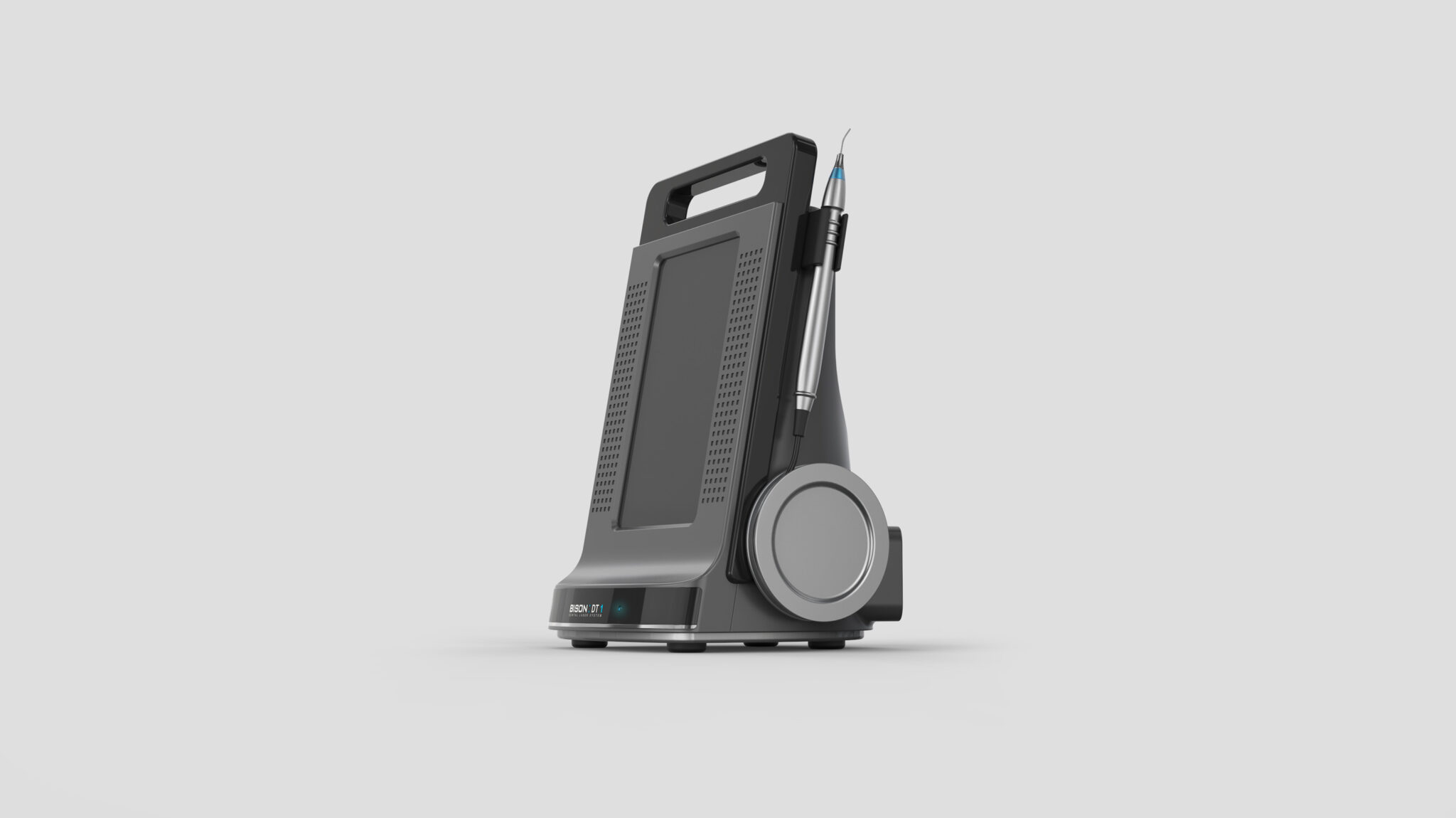 치과용 레이저 장비의 ‘정밀성’과 ‘휴대성’을 동시에 구현한 컴팩트 의료기기 디자인을 목표로 한다. 일체형처럼 보이는 세련된 단일 바디는 불필요한 요소를 제거하고, 본질적인 기능성을 강조하는 미니멀한 실루엣으로 정리되어 있다.