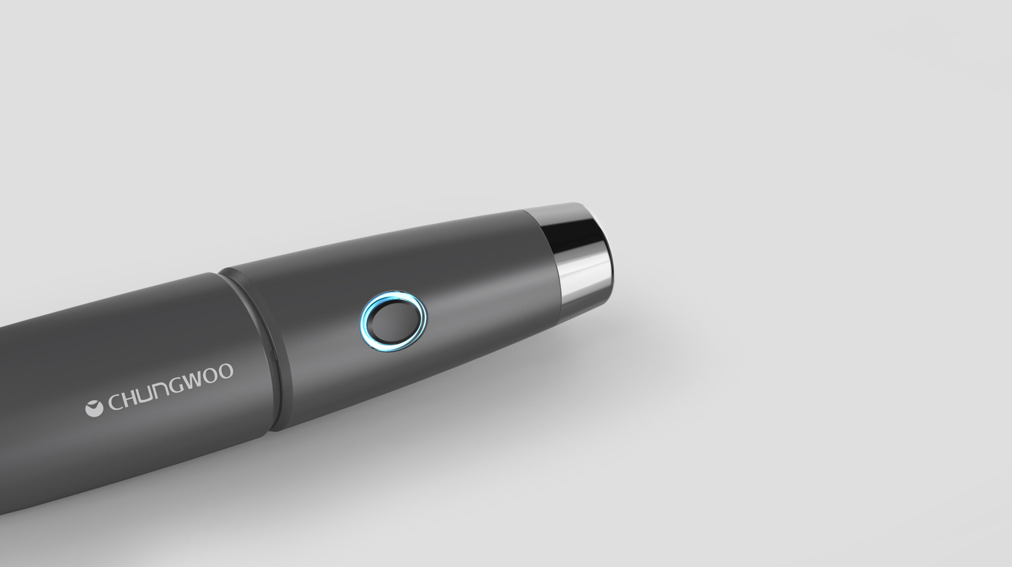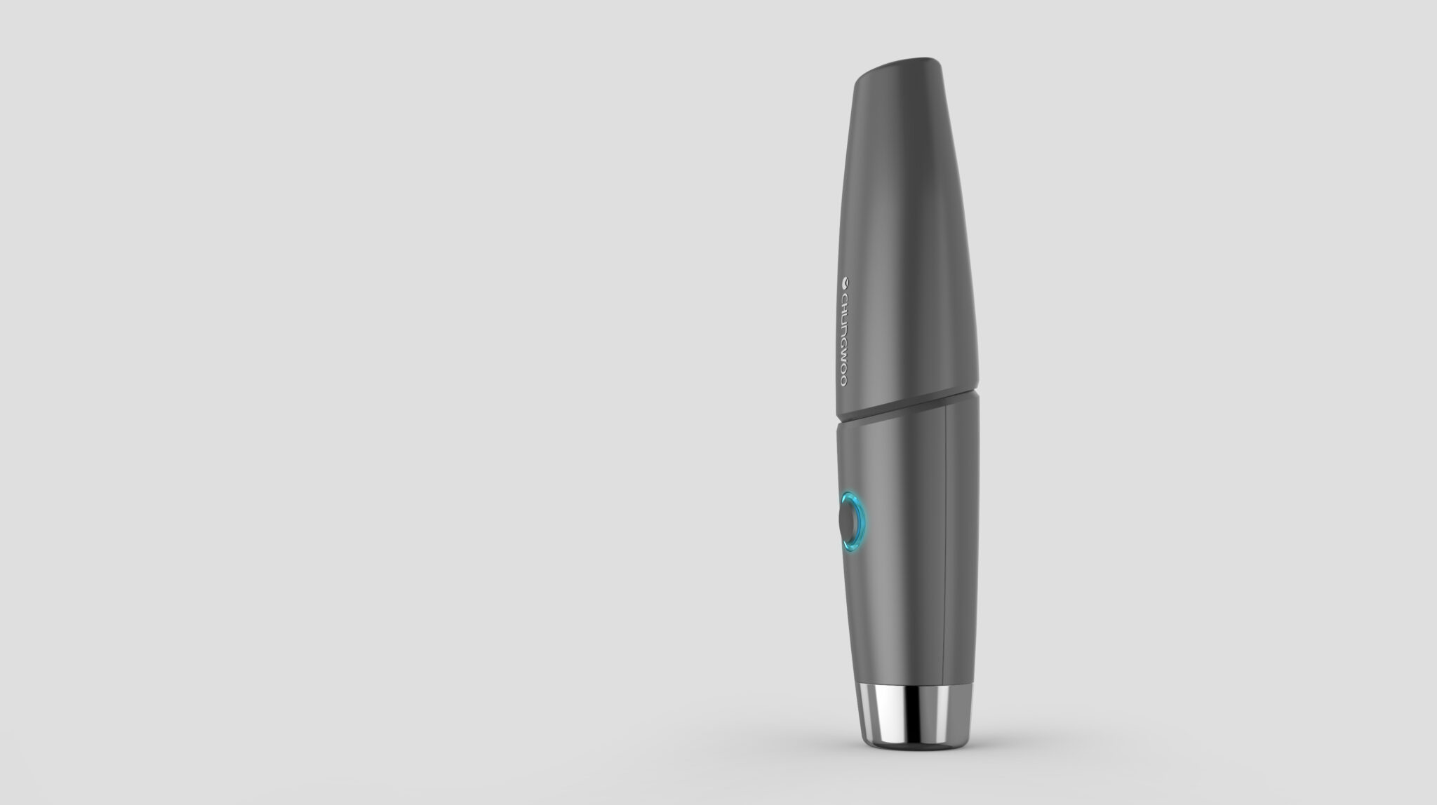 중앙에 배치된 LED 링 버튼은 이 제품의 UX 핵심 요소다. 단순한 전원 버튼을 넘어, 작동 상태·모드·에너지 레벨을 직관적으로 전달하며, 시각적으로는 차분한 바디 컬러 속에서 기술적 포인트로 작용한다. 발광 강도가 과하지 않아 임상 환경이나 가정 환경 모두에서 안정적인 인상을 유지한다.