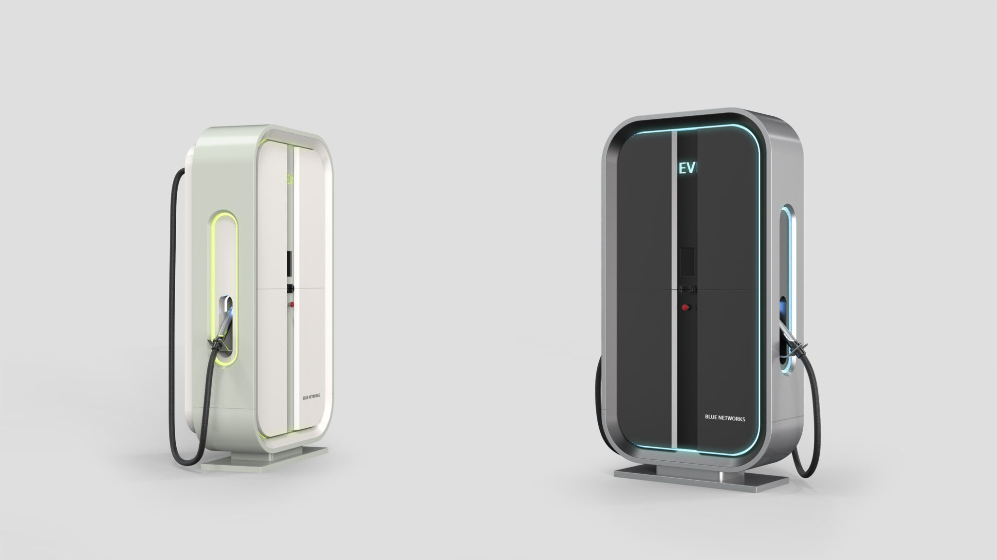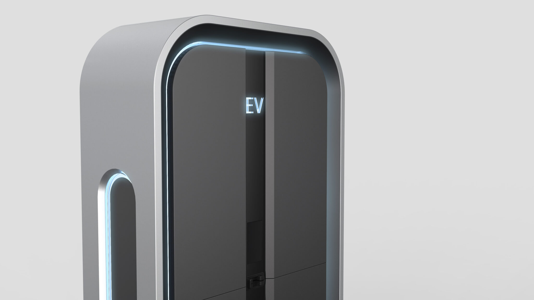 이 EV 충전 시스템은 현대 도시 환경에 조화롭게 적용될 수 있도록 미래지향적이면서도 과도하게 기계적이지 않은 균형감을 바탕으로 설계되었다. 전체적인 프레임은 부드러운 코너 라운딩이 특징인 Soft Rectilinear Form으로 구성되어, EV 시대의 새로운 에너지 인프라가 기존 도심 인프라와 조화롭게 공존하도록 한다.