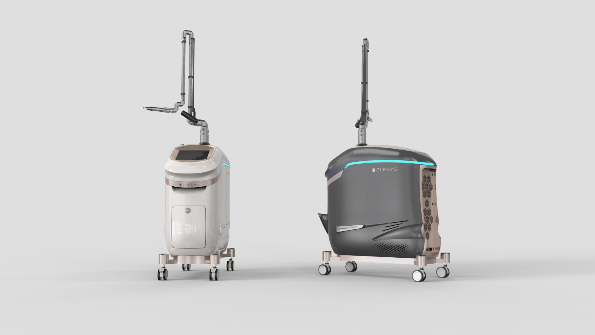 HEALTRON S는 고출력 레이저 시스템이 가진 기술적 전문성과 정밀성을 부드럽고 우아한 외관 컨투어로 재해석한 프리미엄 의료 장비 디자인이다.