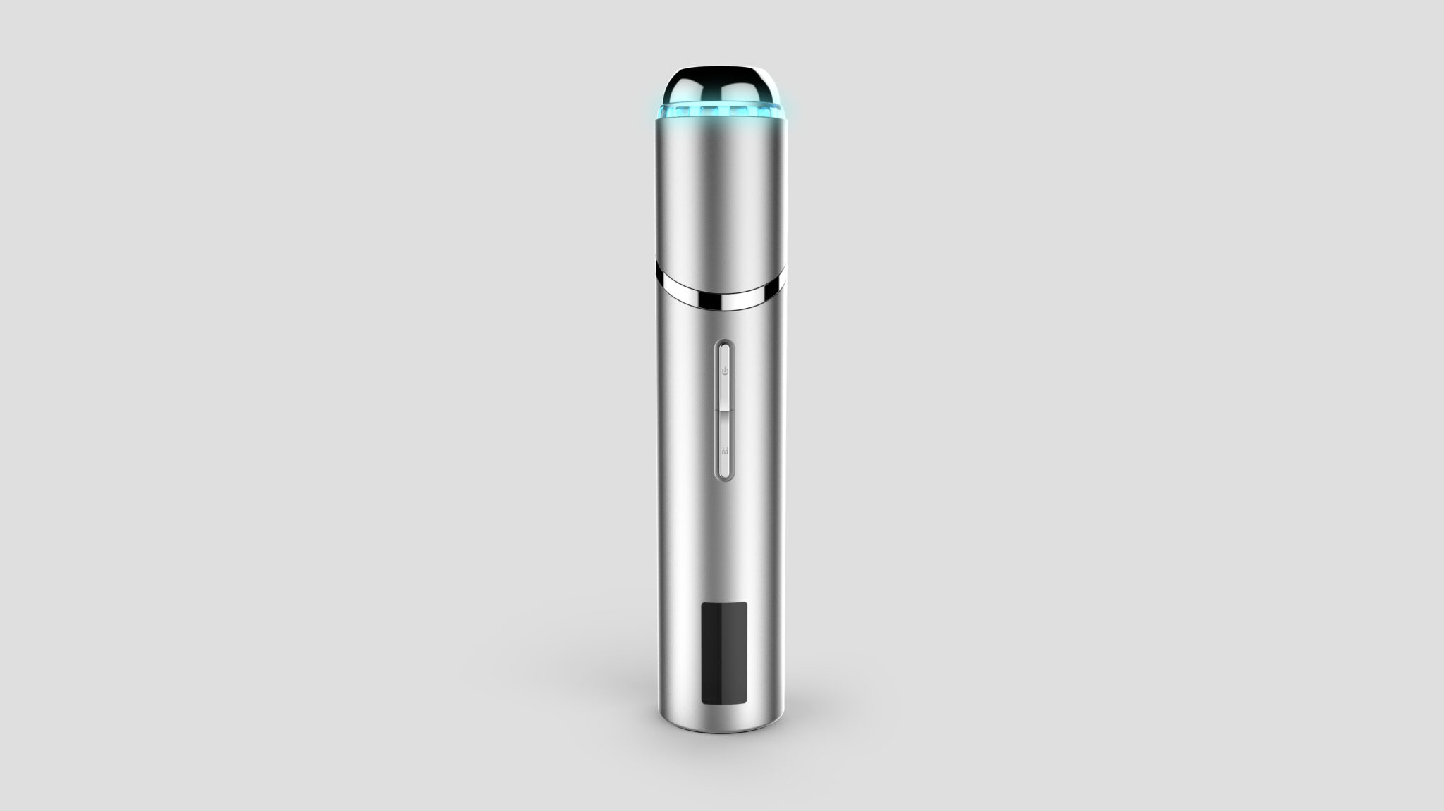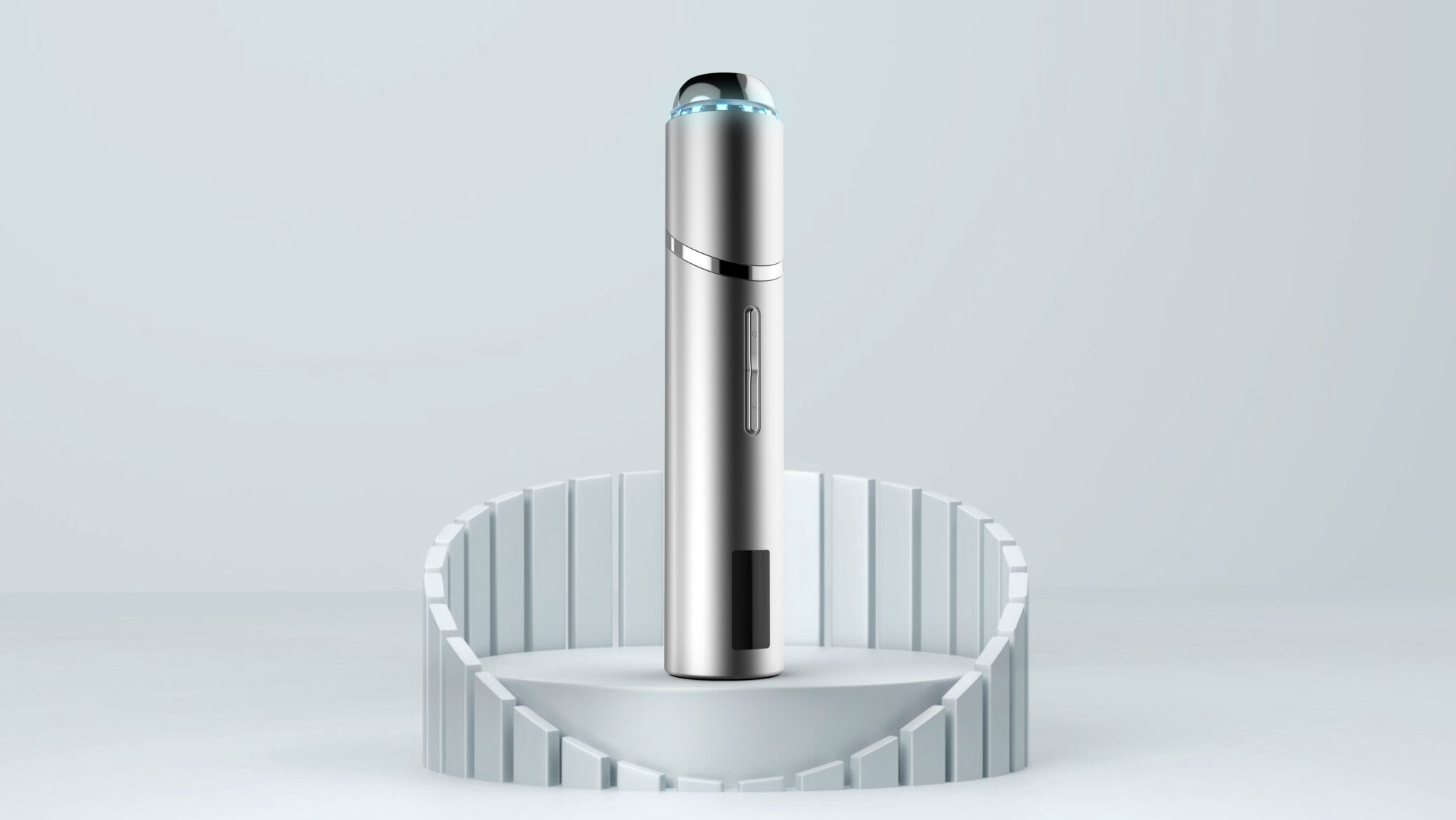 이 제품은 불필요한 요소를 철저히 배제한 미니멀리즘 기반의 하이엔드 퍼스널 디바이스를 지향한다. 전체 실루엣은 하나의 정제된 원통형 볼륨으로 구성되어 있으며, 이는 의료기기와 뷰티 디바이스가 요구하는 신뢰감·위생성·정확성을 직관적으로 전달한다. 수직으로 곧게 서 있는 비례는 사용 시 손에 쥐는 동작과 보관 상태 모두에서 안정적인 인상을 제공하며, ‘도구’가 아닌 오브제로서의 존재감을 강조한다.