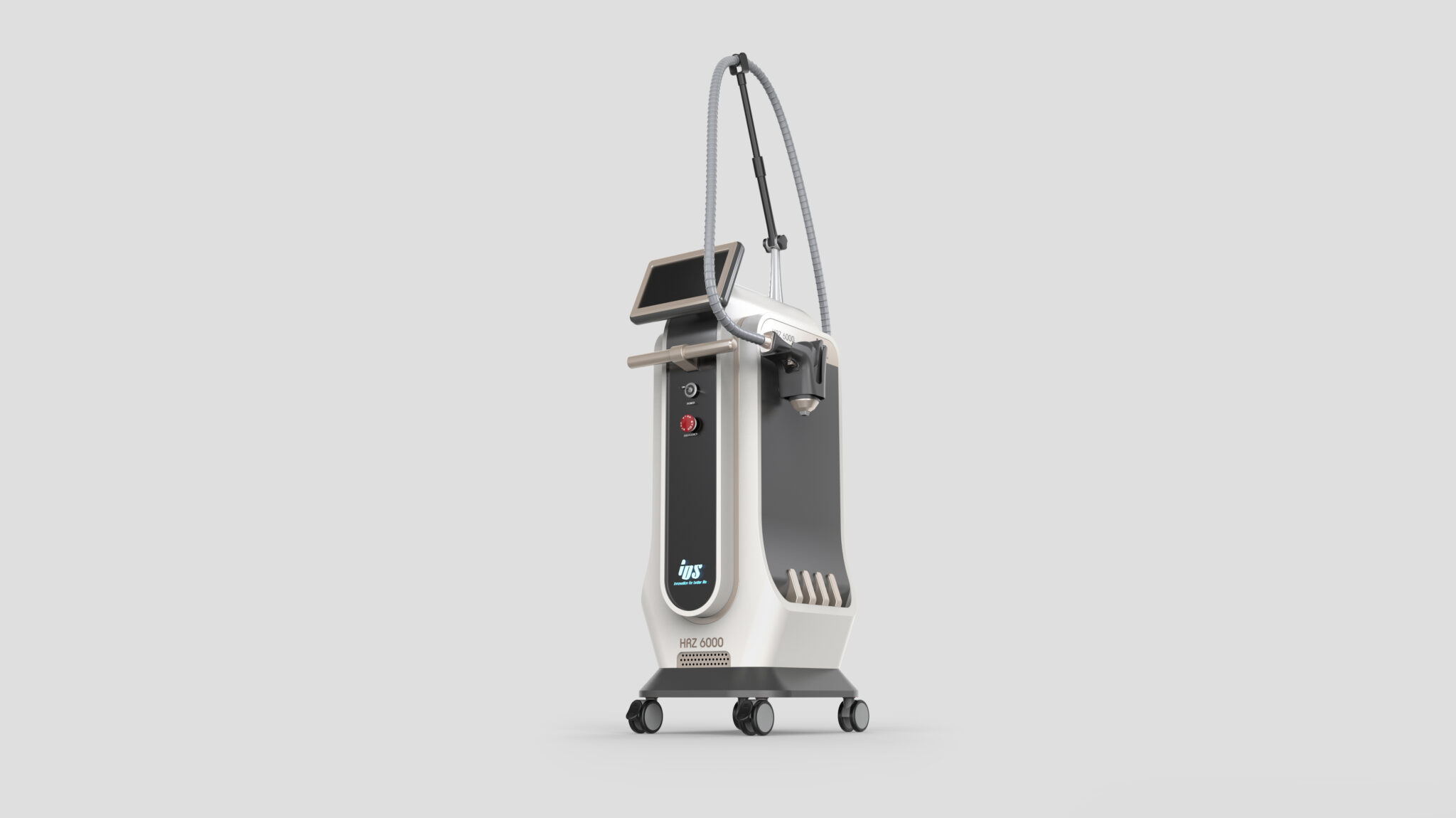 하부의 컴팩트한 캐스터 구조는 장비의 안정적인 이동을 지원하면서도, 전체 볼륨감을 낮춰 시술실 내 다양한 레이아웃에 유연하게 대응할 수 있도록 한다. 이는 병·의원, 클리닉 등 실제 사용 맥락을 충분히 반영한 결과이다.