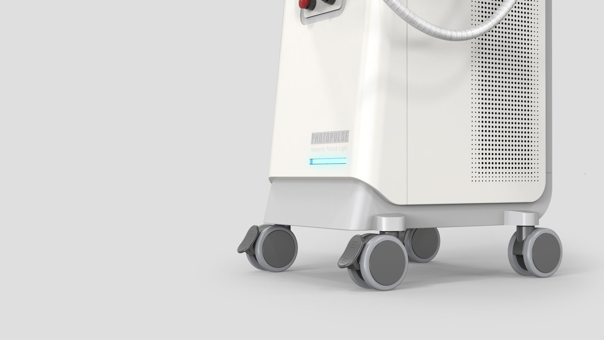 이 디자인은 고출력 광 에너지(IPL)를 안정적으로 전달하는 기술 장비의 신뢰성과, 사용자를 배려하는 부드러운 조형미를 동시에 구현하는 ‘Soft-Precision Clinical System’을 콘셉트로 한다.