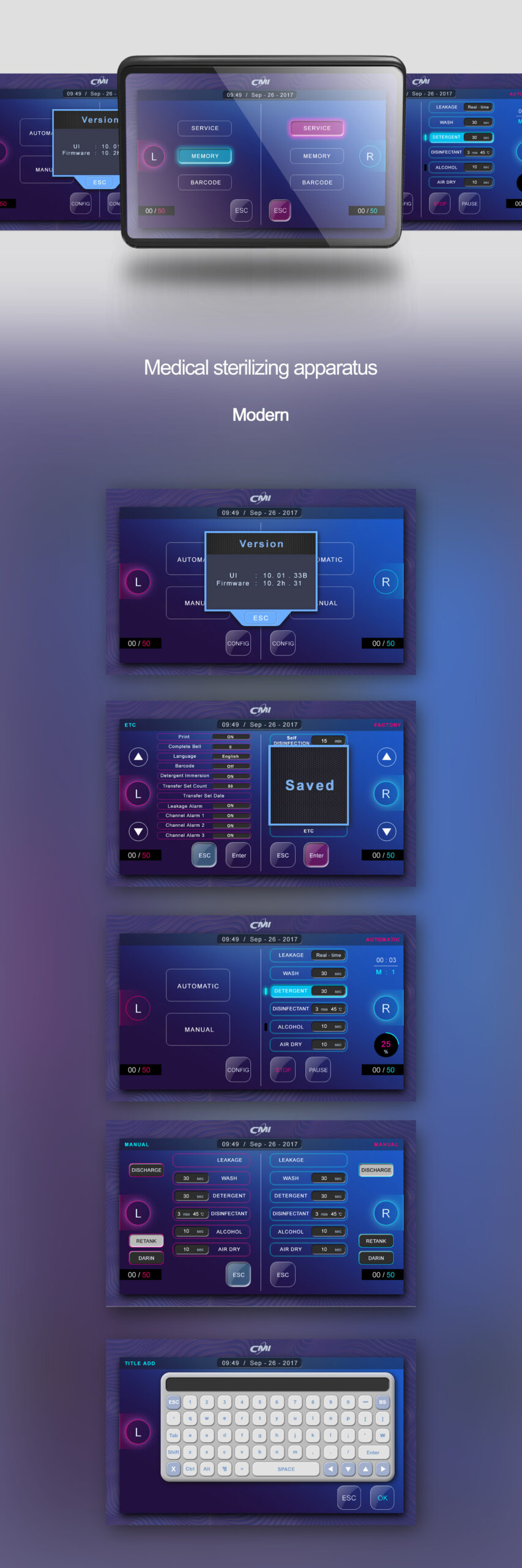 정확한 멸균 프로세스를 직관적으로 제어하고, 의료 환경의 청결성과 신뢰성을 시각적으로 전달하는 것을 목표로 한다.