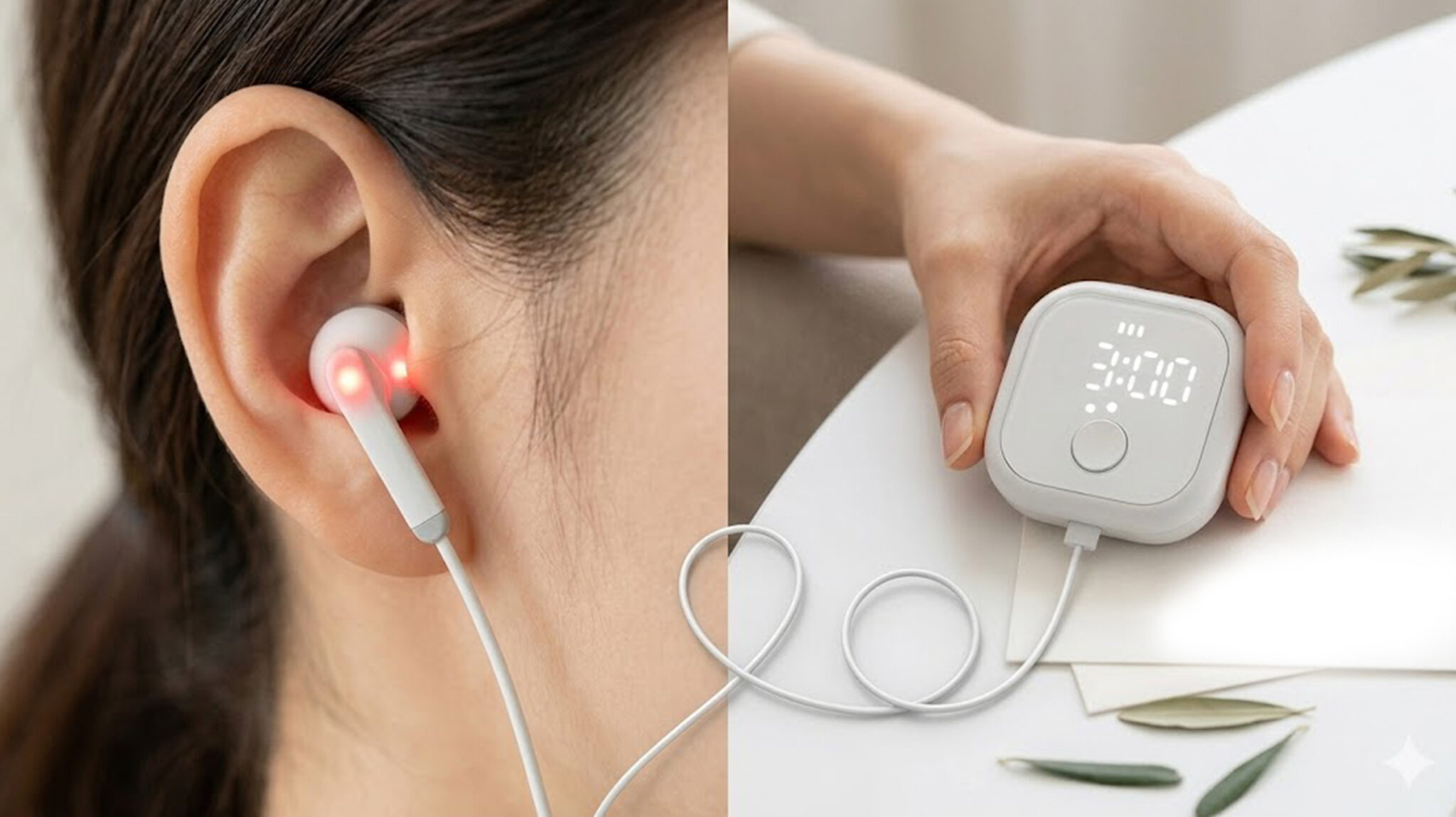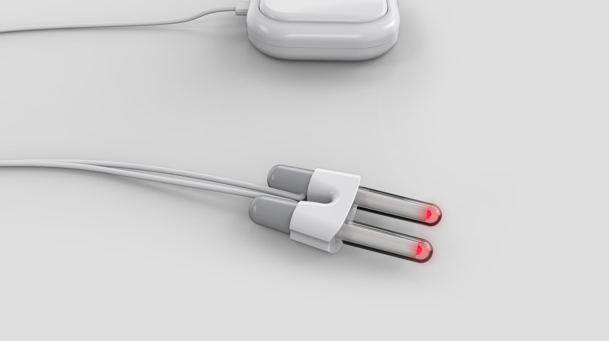 프로브 형태의 적용부는 인체 접촉 환경을 고려한 유선형 구조와 매끄러운 소재 전환으로 위생 관리와 착용 편의성을 강화하고, 케이블과 디바이스 간 연결 또한 시각적으로 단순화하여 의료 행위보다는 ‘케어 경험’에 가까운 인상을 형성한다. 은은한 표시광과 디지털 인터페이스는 기능 상태를 명확히 전달하면서도 과도하게 기술적인 느낌을 배제하여, 일상 환경에서도 자연스럽게 사용 가능한 홈케어 디바이스의 성격을 강조한다.
