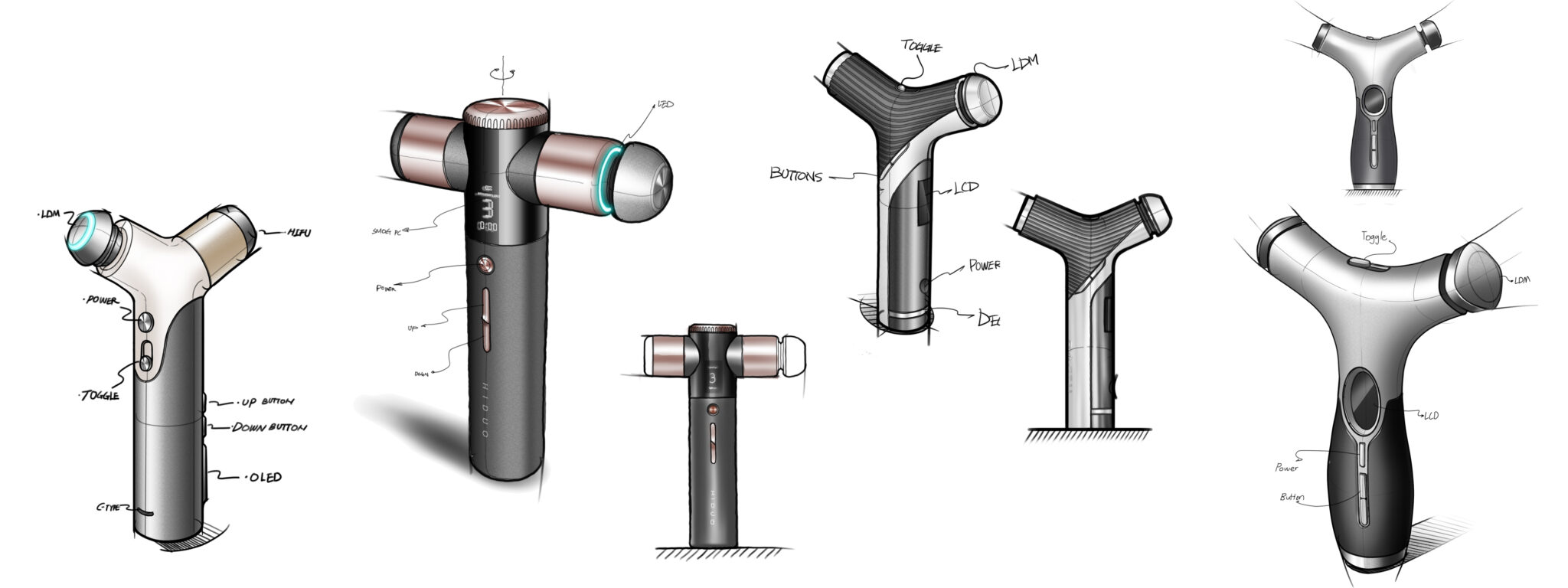 종합적으로 이 디자인은 “의료 기술의 정밀함을 일상 속 케어 경험으로 축소한 퍼스널 스킨케어 툴”, “강한 성능을 직관적 형태와 감성적 인터페이스로 전달하는 홈 에스테틱 디바이스”라는 컨셉을 바탕으로, 기능·사용성·감성의 균형을 통해 차별화된 개인용 스킨케어 경험을 제안한다.