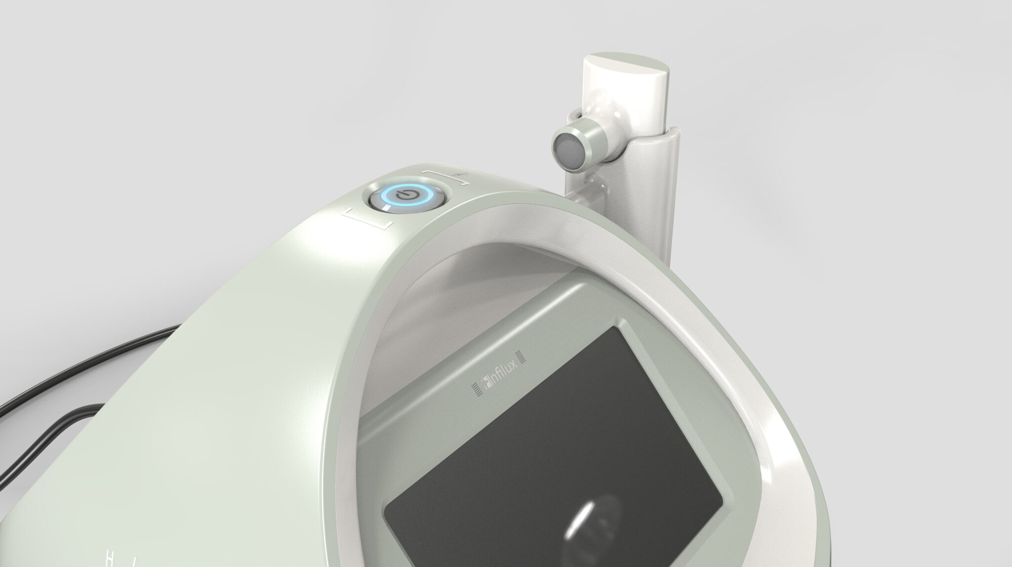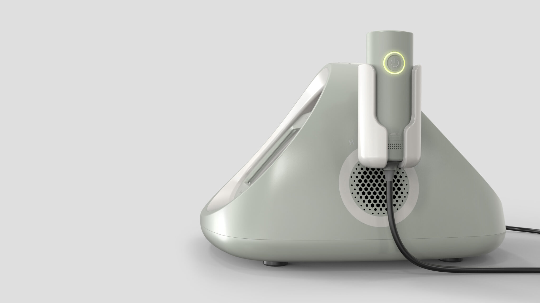 전체적인 실루엣은 하나의 물방울처럼 매끄럽게 이어지는 Monolithic Soft Form(모놀리식 소프트 폼) 구조로, 의학적 장비 특유의 기계적·공업적 이미지를 최소화하고 안정감·친근함·세심함을 강조한다.