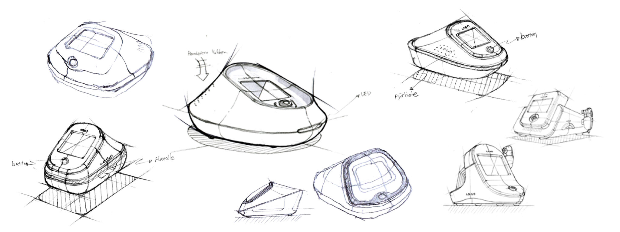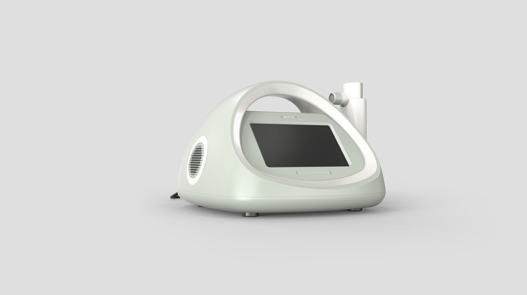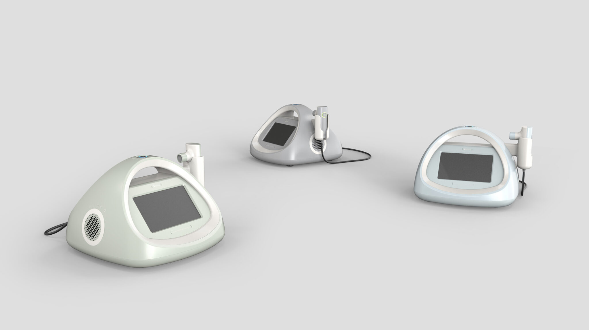 곡선 기반의 닫힌 볼륨과 상단의 통합형 손잡이는 전문 의료기기를 누가 봐도 쉽게 옮기고, 쉽게 사용할 수 있다는 메시지를 전달하는 핵심 요소다.