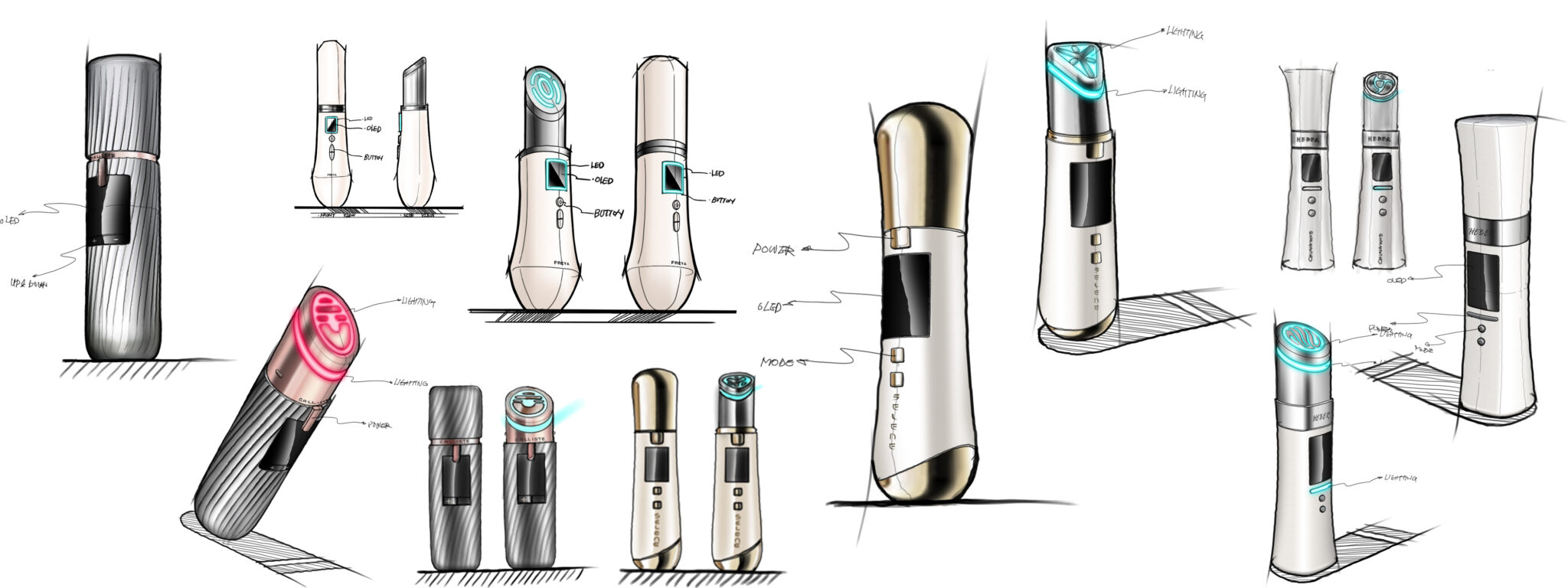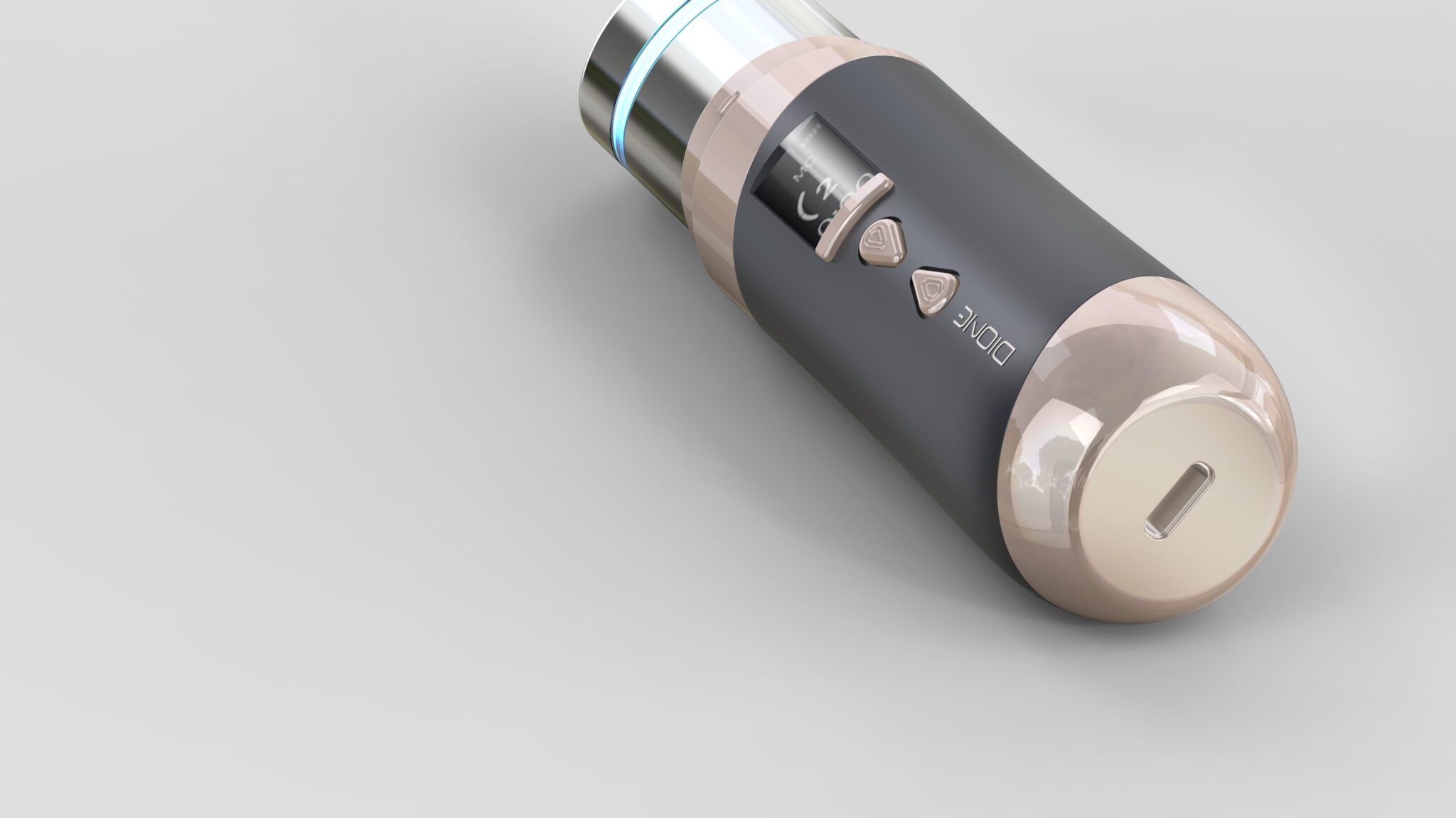 종합적으로 이 디자인은 의료기기 수준의 신뢰감, 프리미엄 뷰티 디바이스의 감성, 휴대형 제품에 최적화된 인체공학적 조형을 균형 있게 통합한 결과물이다. 단순한 소형 미용기기가 아니라, 전문 시술 경험을 일상으로 확장시키는 포터블 메디컬 뷰티 오브제로서 높은 디자인 완성도를 보여준다.
