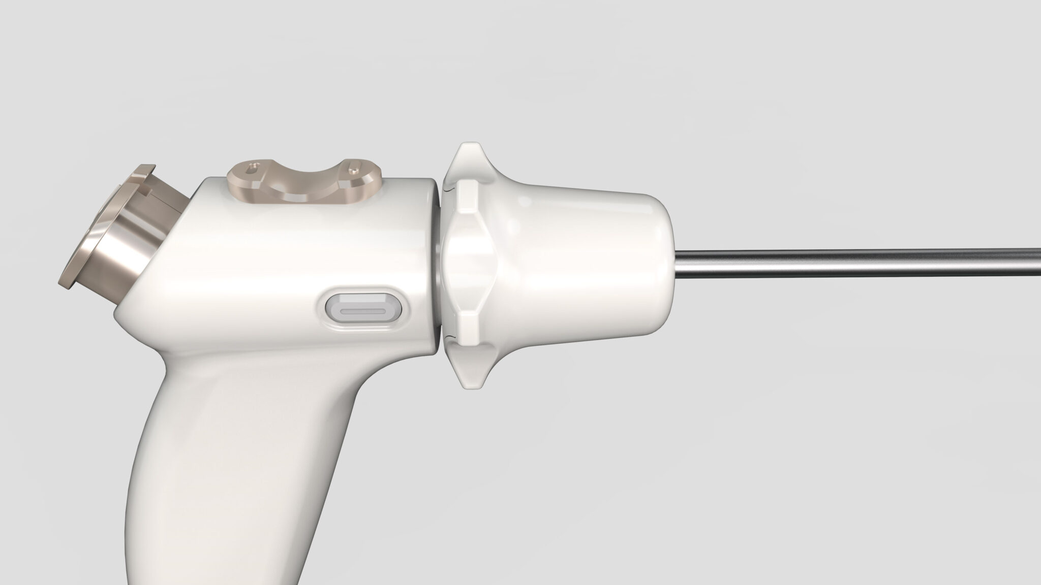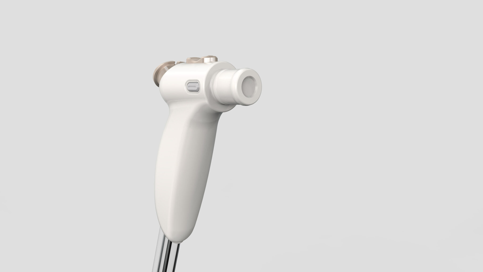 핸드피스 바디는 손가락과 손바닥의 곡률을 따라 자연스럽게 잡히는 유선형(Contoured) 구조를 기반으로 하여, 장시간 사용 시 피로도를 최소화하고 지지력을 최적화하도록 설계되었다.