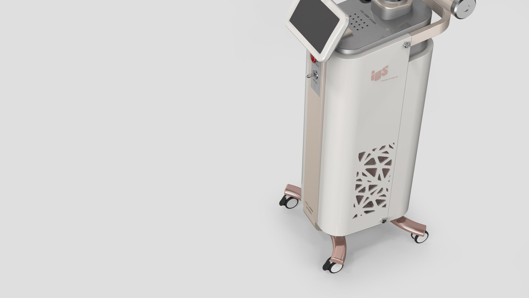 종합적으로 본 제품은 “정밀 기술·프리미엄 미학·사용자 중심 시술 경험이 결합된 하이엔드 CO₂ 레이저 플랫폼”이라는 컨셉으로 요약되며, 기술적 신뢰성과 감성적 안정성이 자연스럽게 통합된 완성도 높은 의료기기 디자인이다.