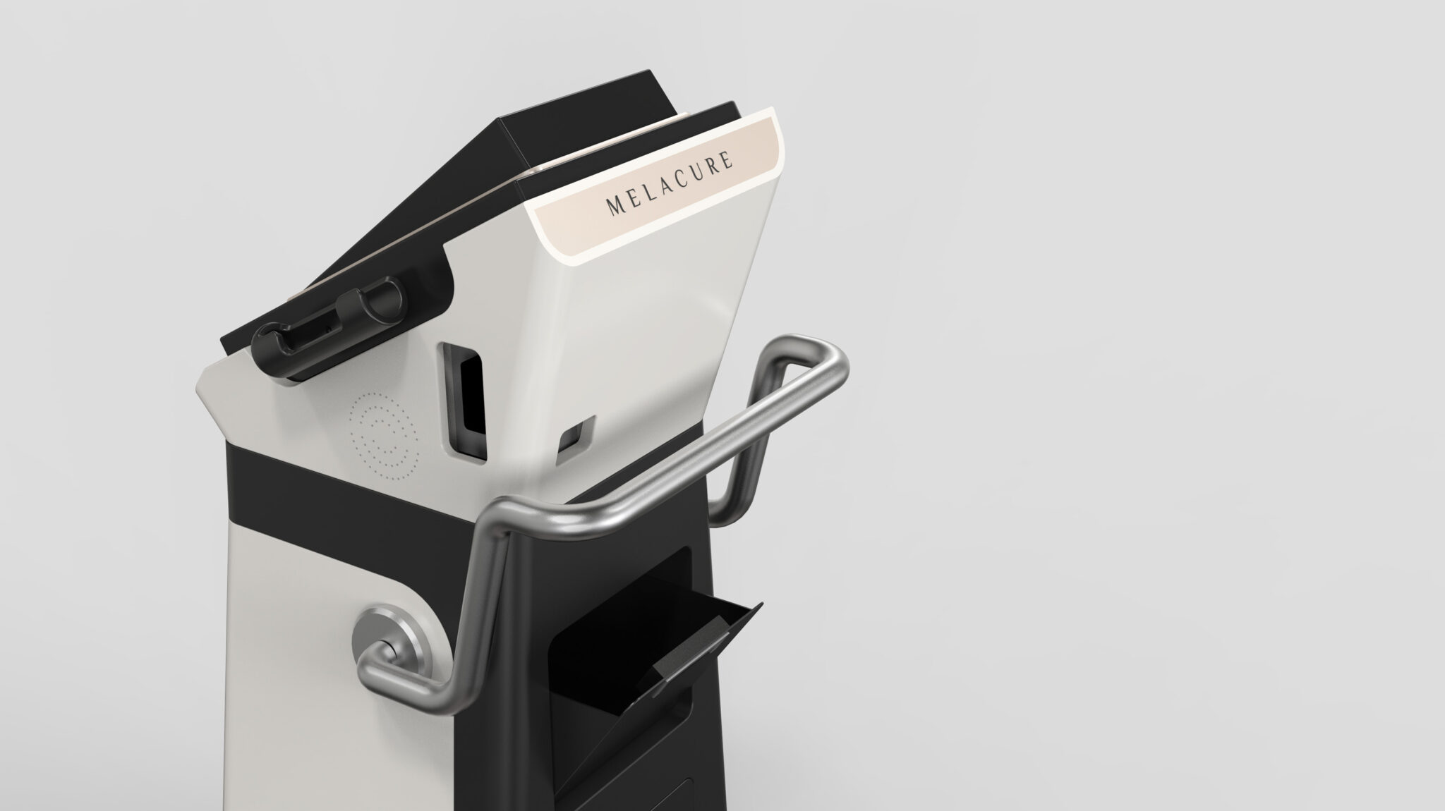 전체 바디는 불필요한 절개선을 최소화한 모노리스 형태(Monolithic Form)로 구조적 견고함과 전문 의료장비 특유의 신뢰감을 강조한다. 컬러는 오프 화이트와 미드 그레이, 그리고 포인트로 사용된 웜톤 메탈릭이 조화되어 절제된 고급스러움을 제공하며, 감성적 안정감을 부여한다.