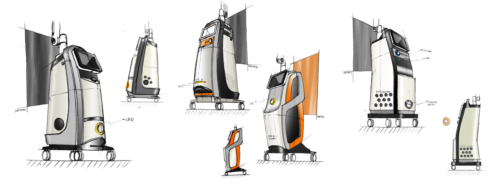 병원용 의료기기가 지녀야 할 전문성, 신뢰성, 정확성을 시각적으로 강화하면서도 사용자 경험을 중심에 둔 Soft-Tech 기반의 하이엔드 메디컬 오브제를 목표로 하고 있다.