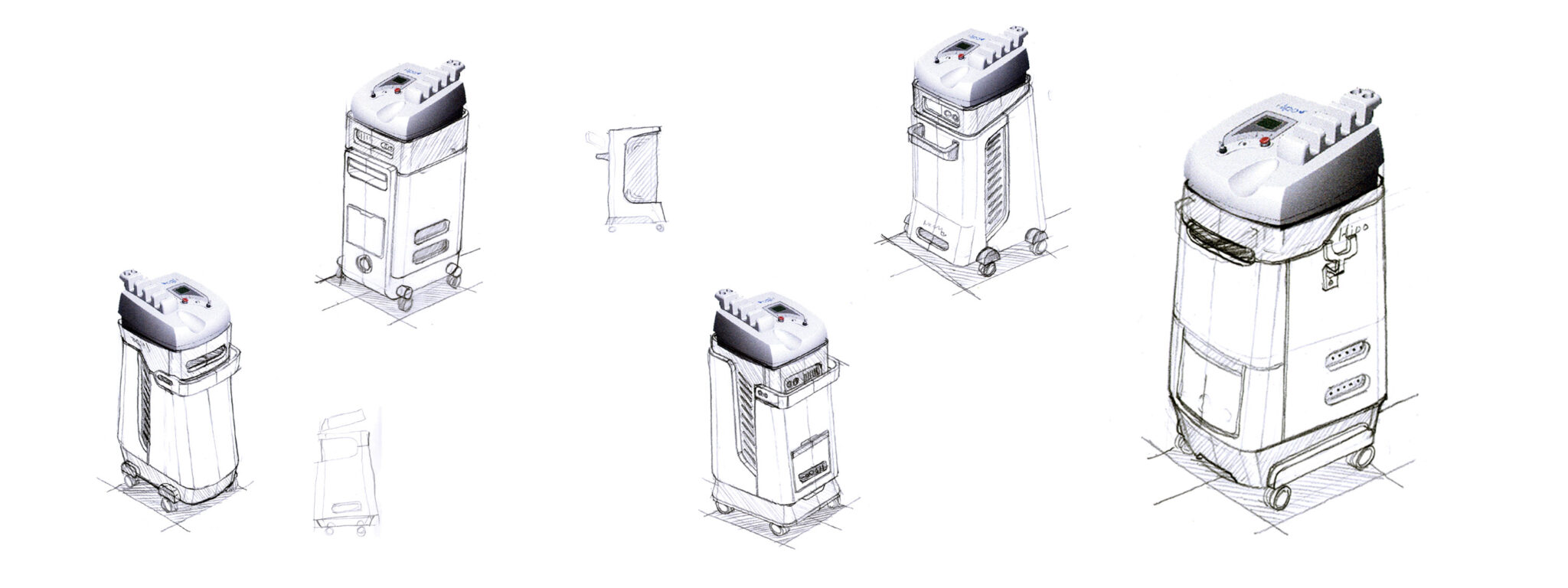 의료기기는 기본적으로 신뢰·위생·안정성을 사용자에게 즉각적으로 전달해야 하며, 이 디자인은 이를 위해 라운드 중심의 볼륨 처리 + 절제된 테크 디테일을 결합해 “전문적이지만 친근한 의료 장비”라는 독특한 무드를 완성한다.